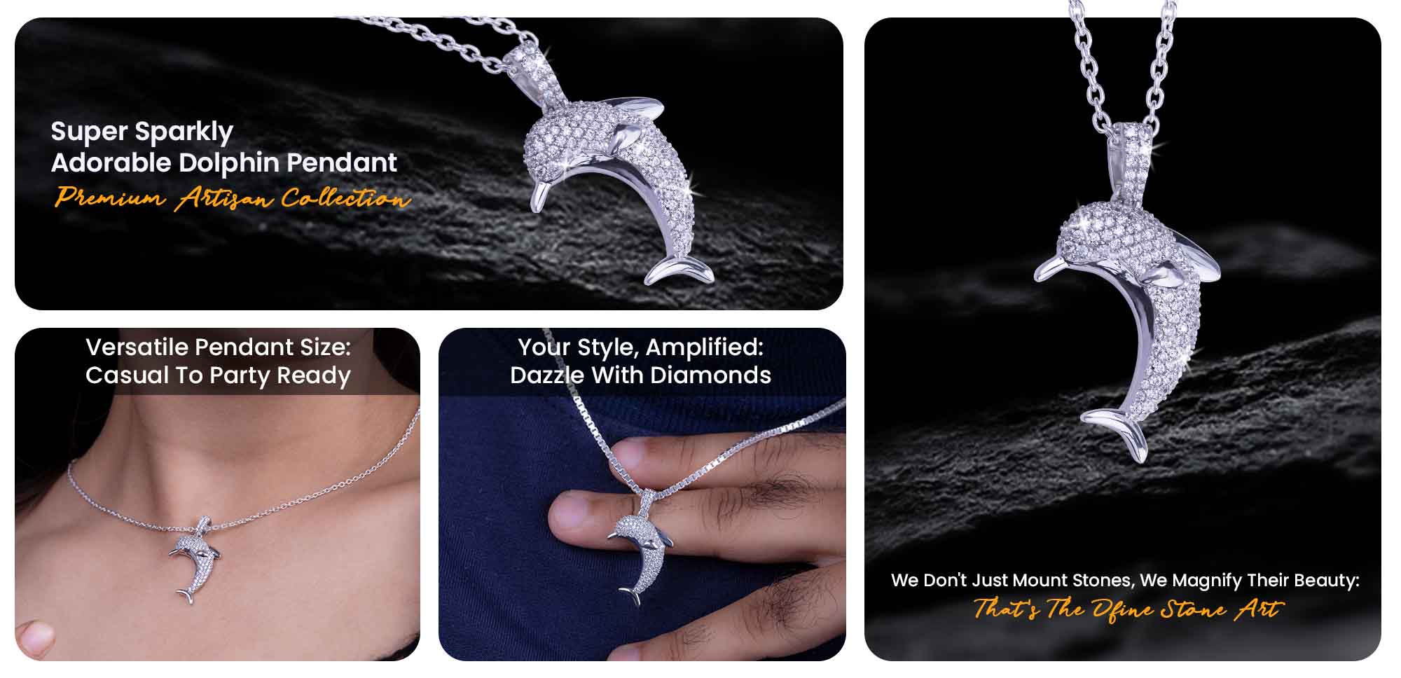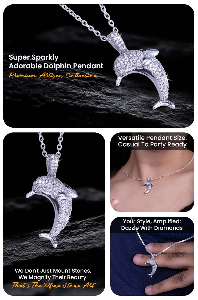 Learn moreMoissanite Iced Out Dolphin Pendant Necklace Ocean Jewelry