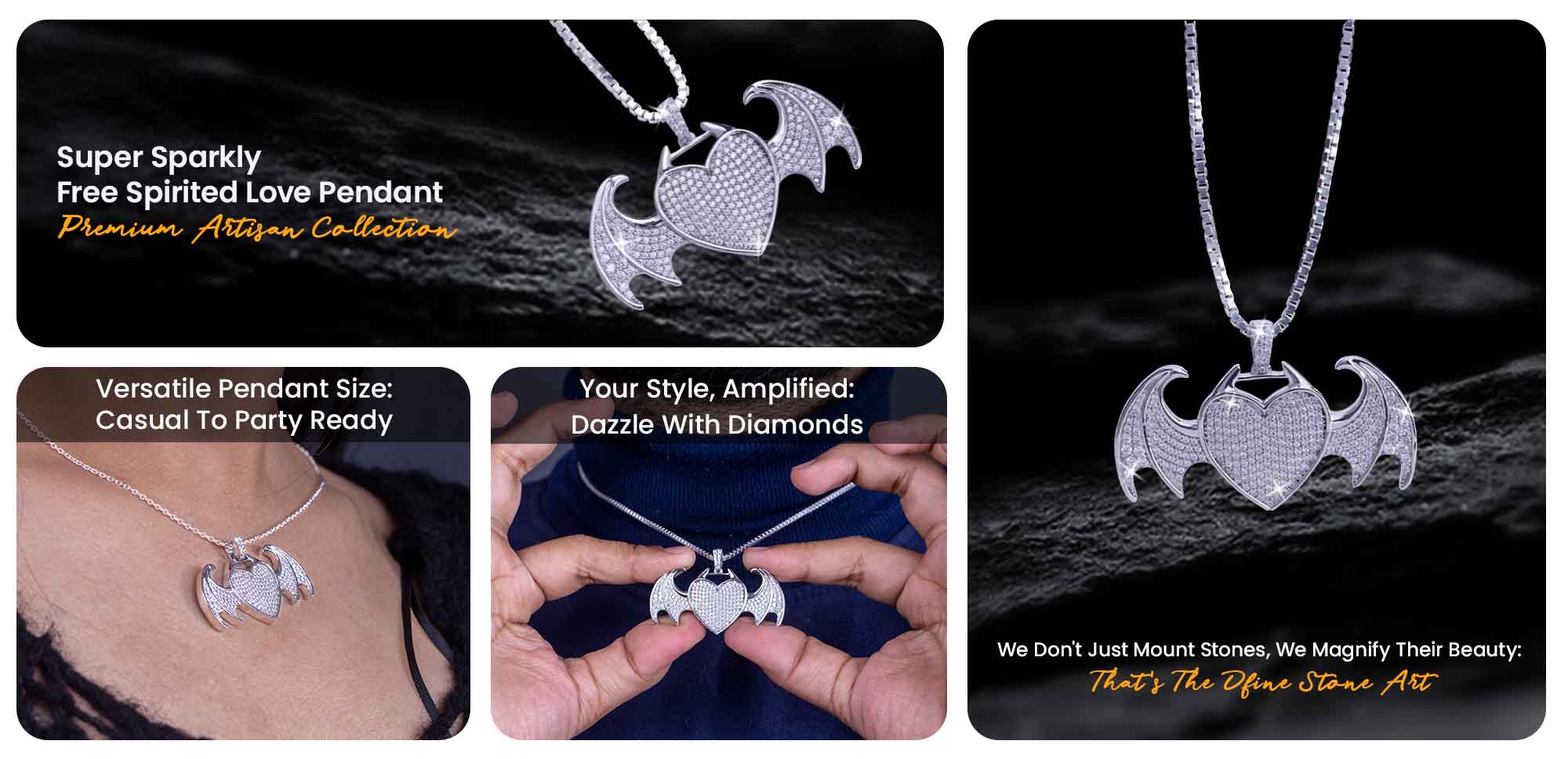 Learn moreMoissanite Iced Out Heart with Dragon Wings Pendant Necklace Hip Hop Jewelry