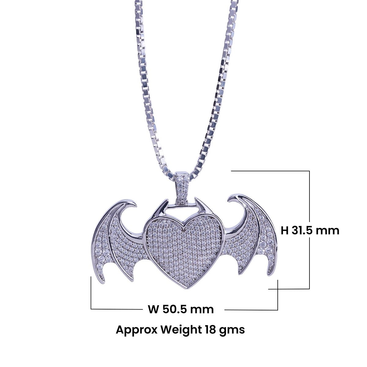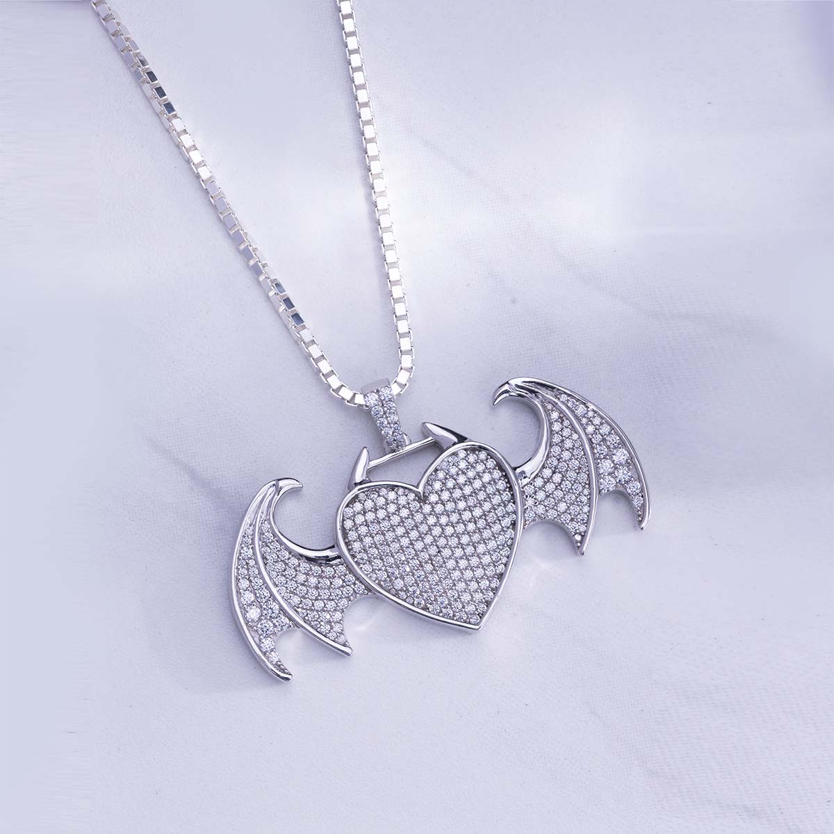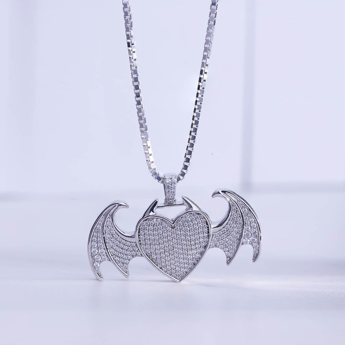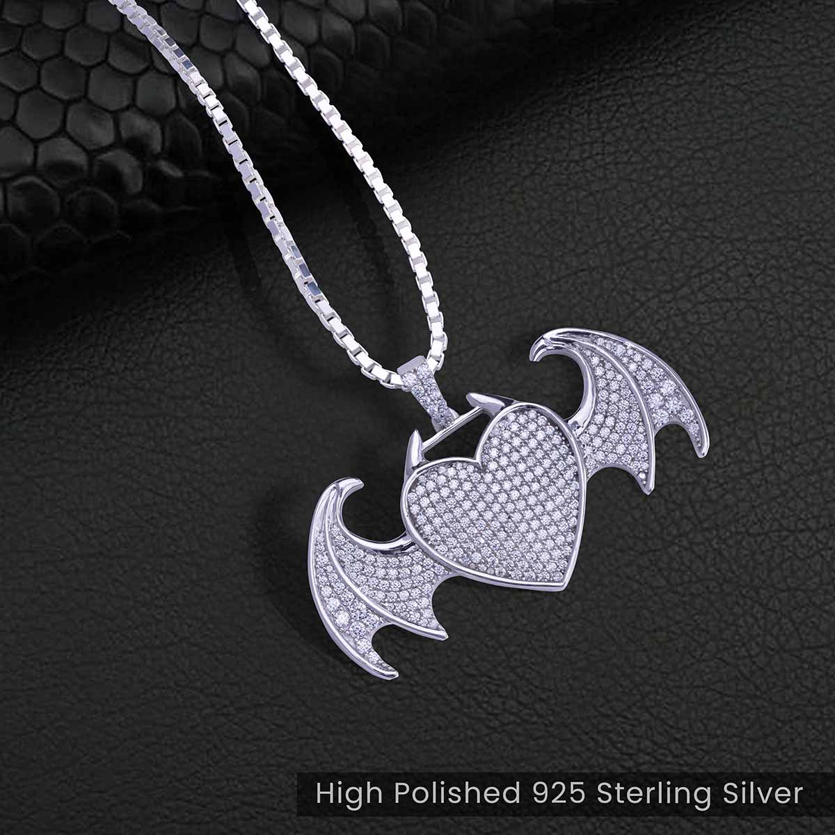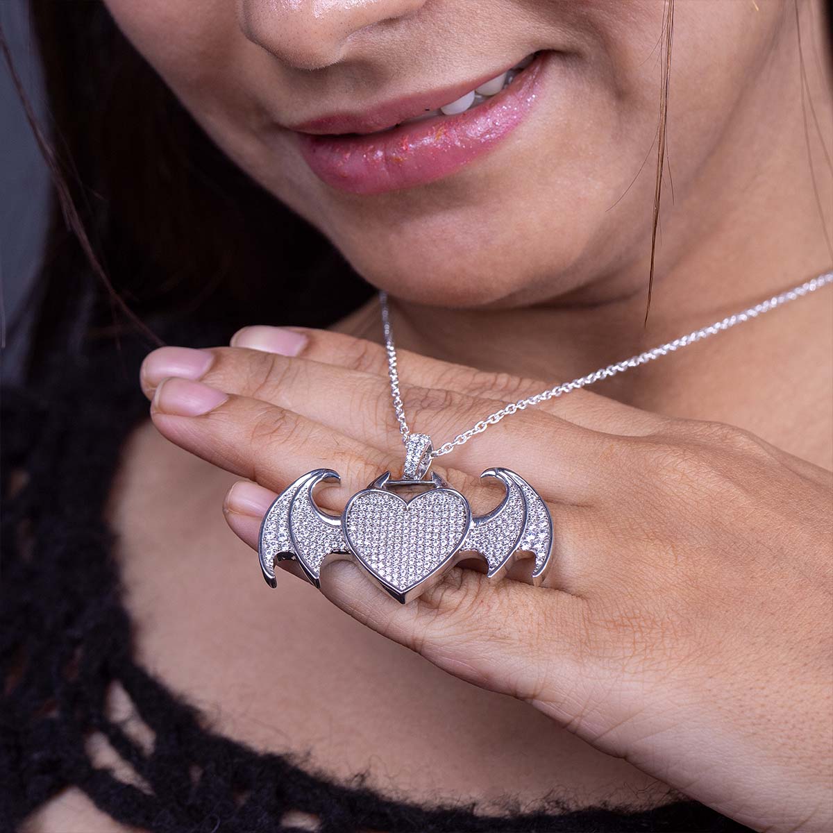 Moissanite Iced Out Heart with Dragon Wings Pendant Necklace Hip Hop Jewelry