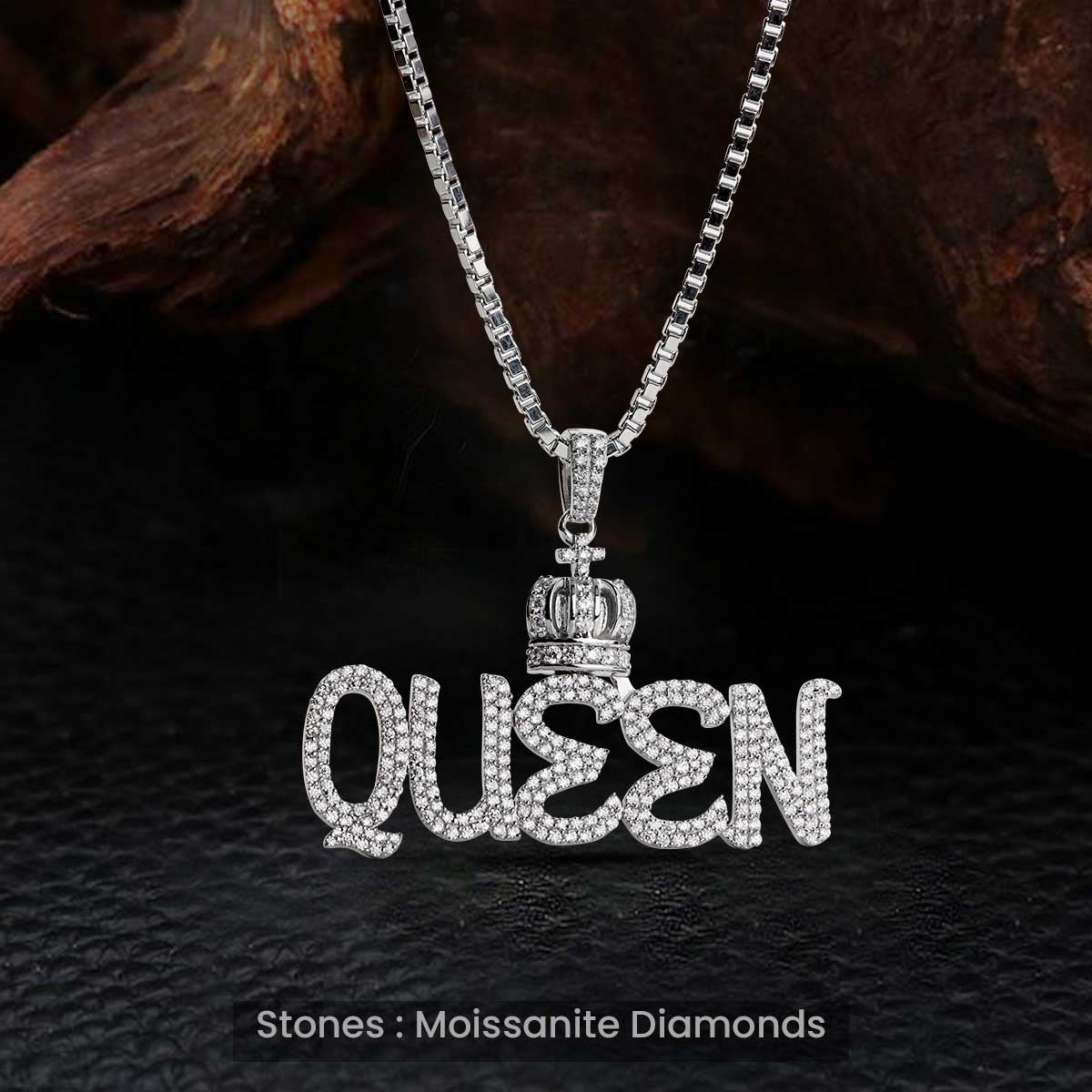 Moissanite Iced Out QUEEN Necklace with Crown Hip Hop Jewelry