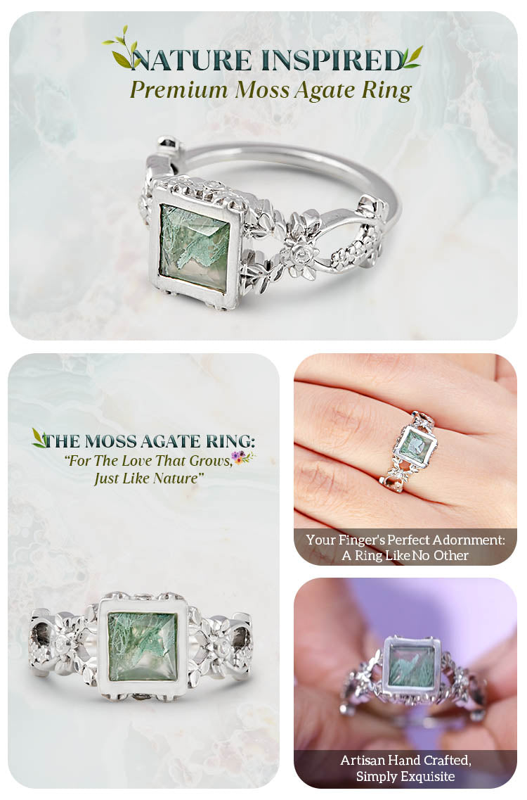 Learn moreMoss Agate Art Deco Ring Floral Leaf Vine Engagement Ring Her