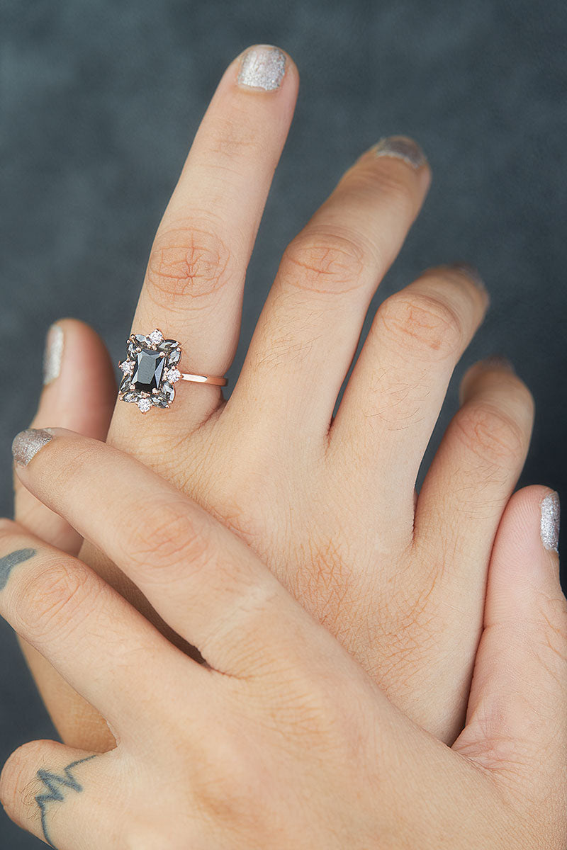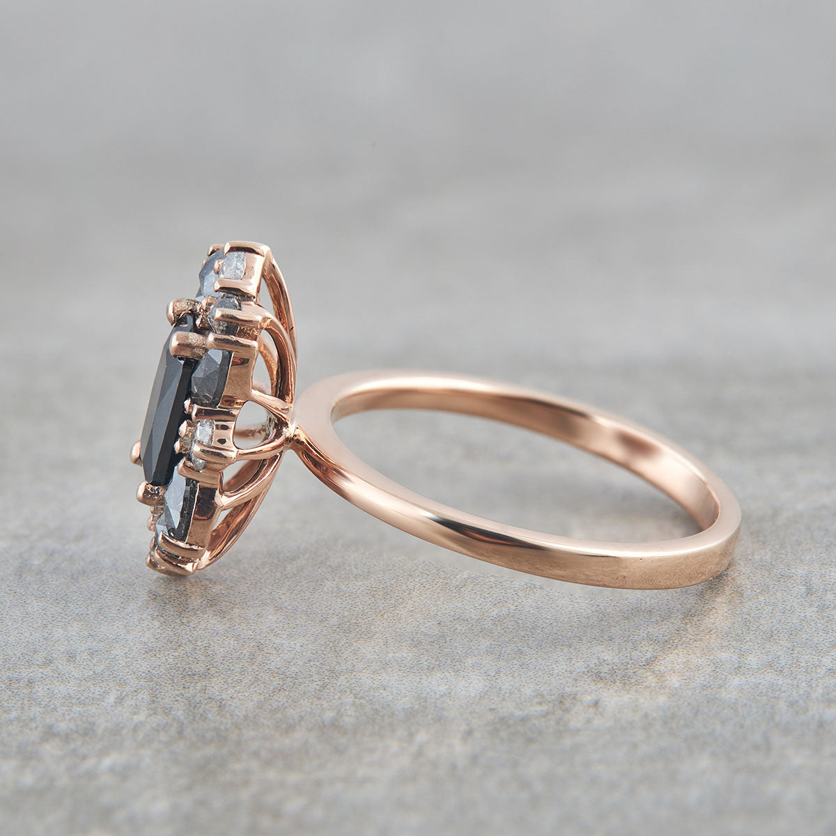 Natural Black Diamond Engagement Ring Set Salt & Pepper Ring