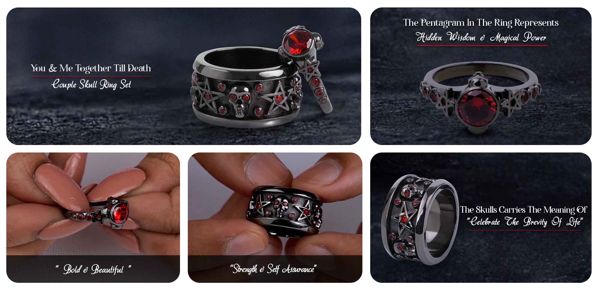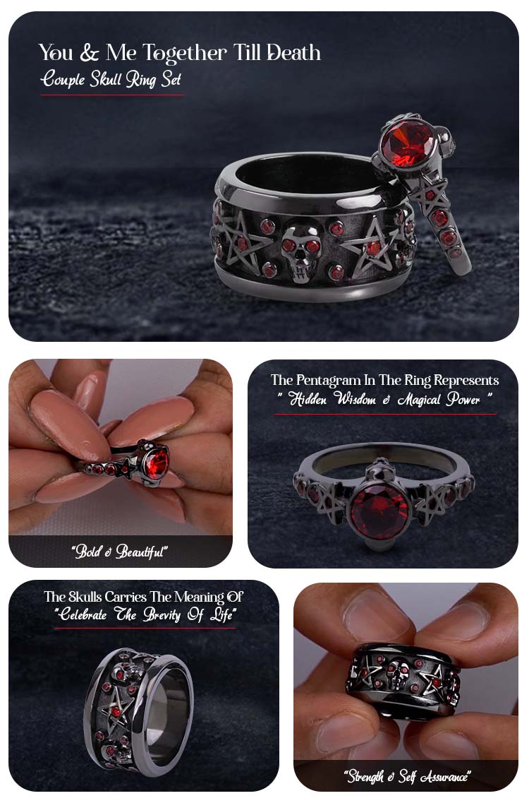 Learn morePentagram Skull Ring Set Gothic Wedding Rings for Couple Gun Metal Finish