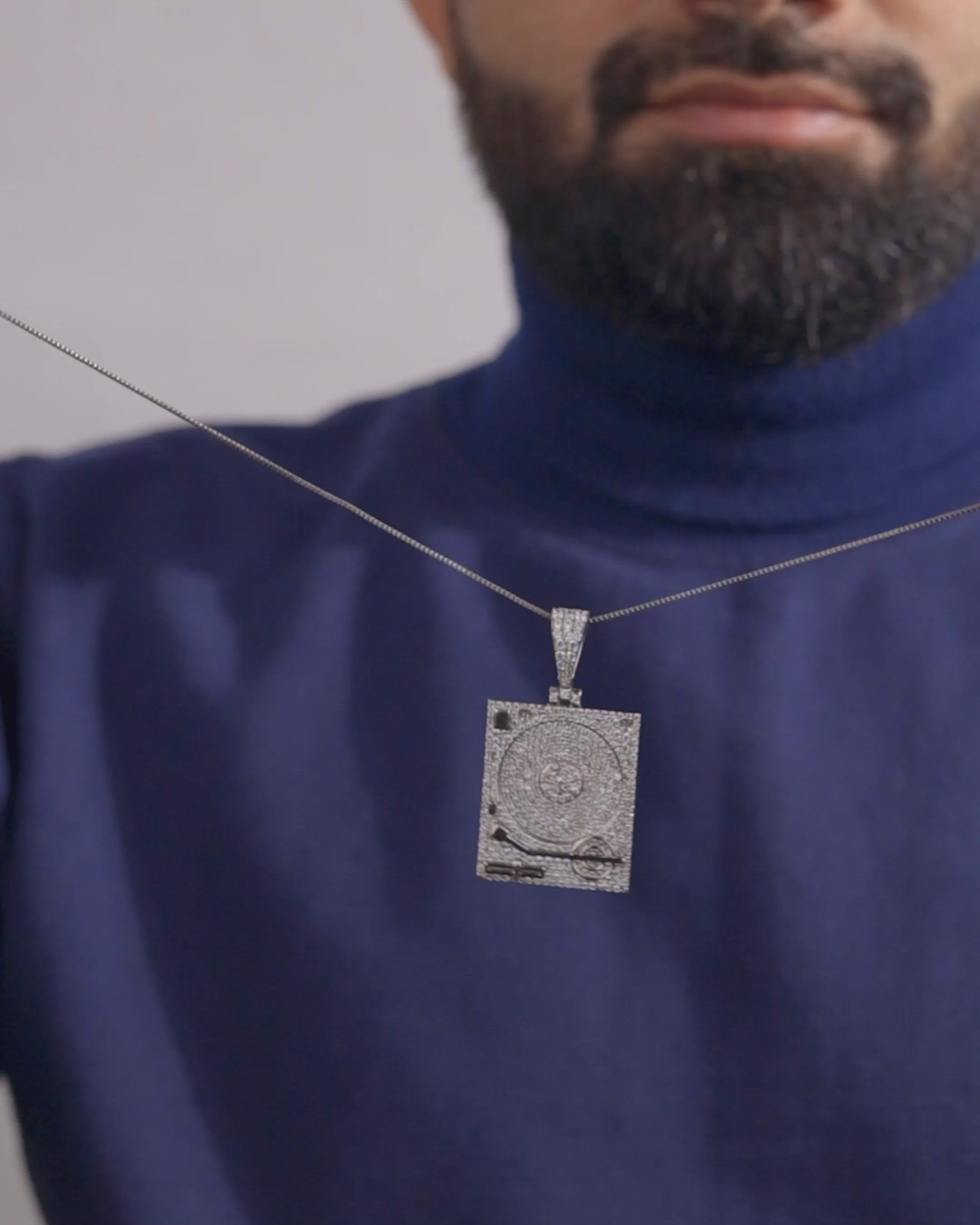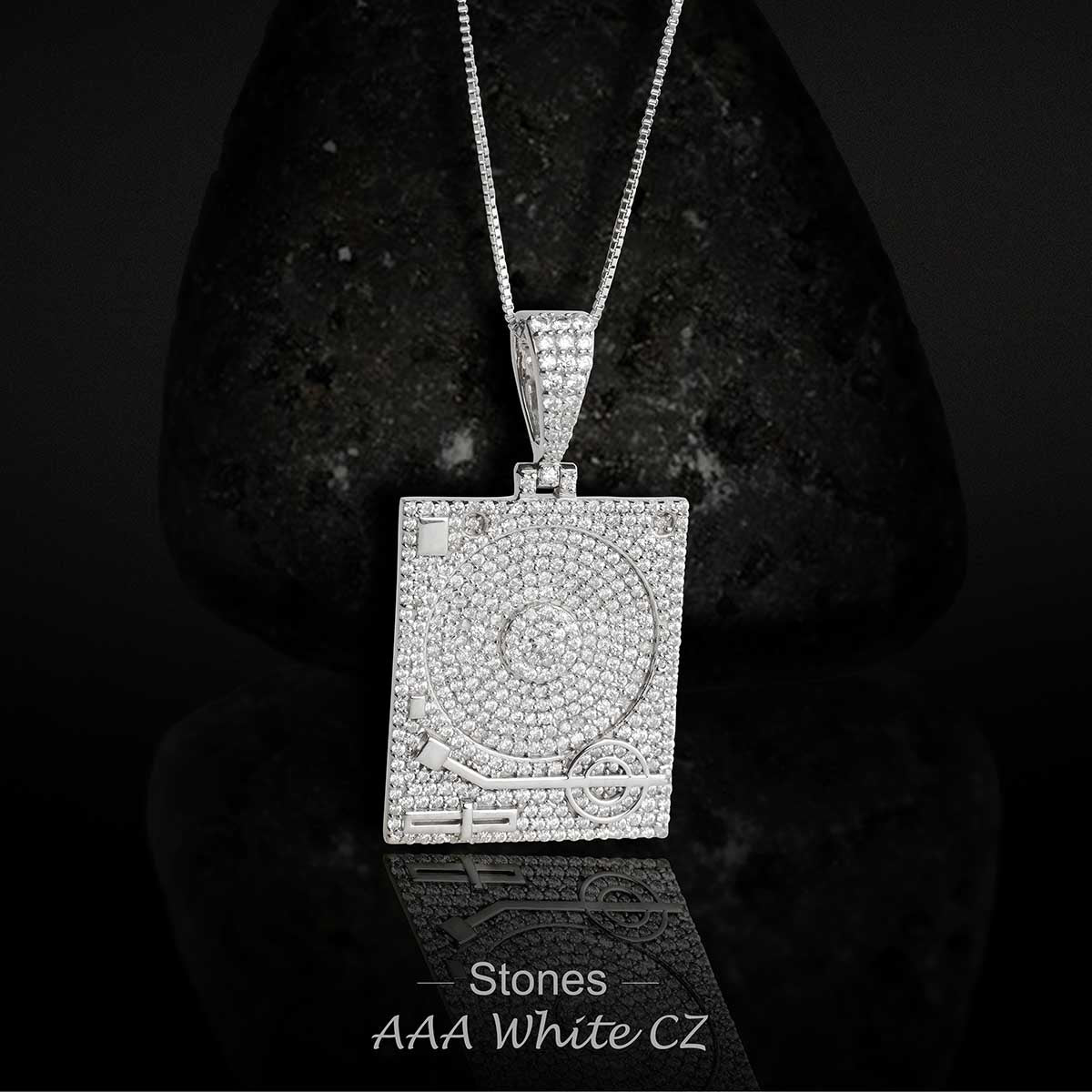 Phonograph Pendant Necklace Sterling Silver Hip Hop Jewelry CZ Diamond