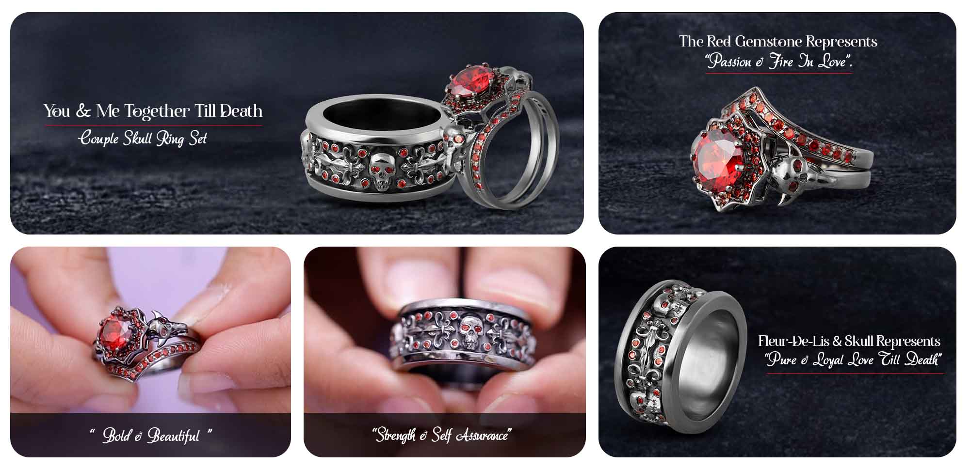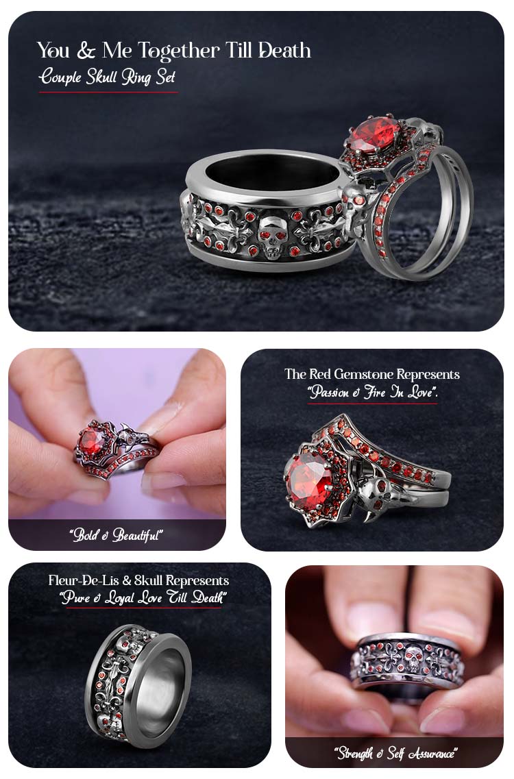 Learn moreRed Garnet Devil Skull Wedding Ring Set His and Her Gothic Trio Couple Rings