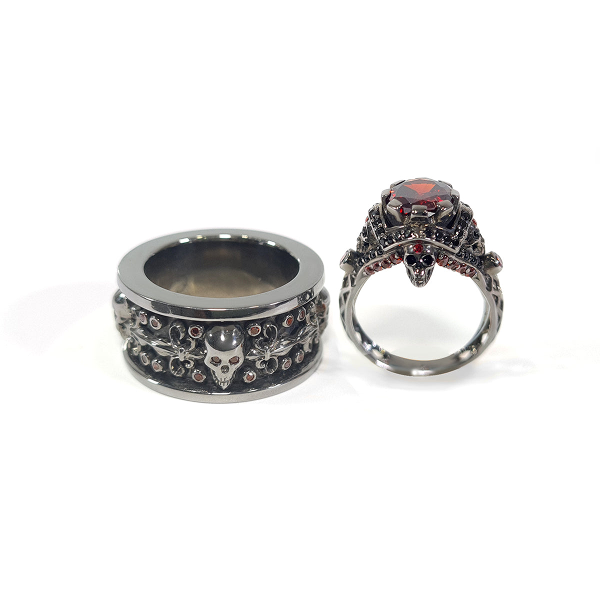 Learn moreRed Garnet Matching Skull Rings His and Her Vampire Fleur De Lis