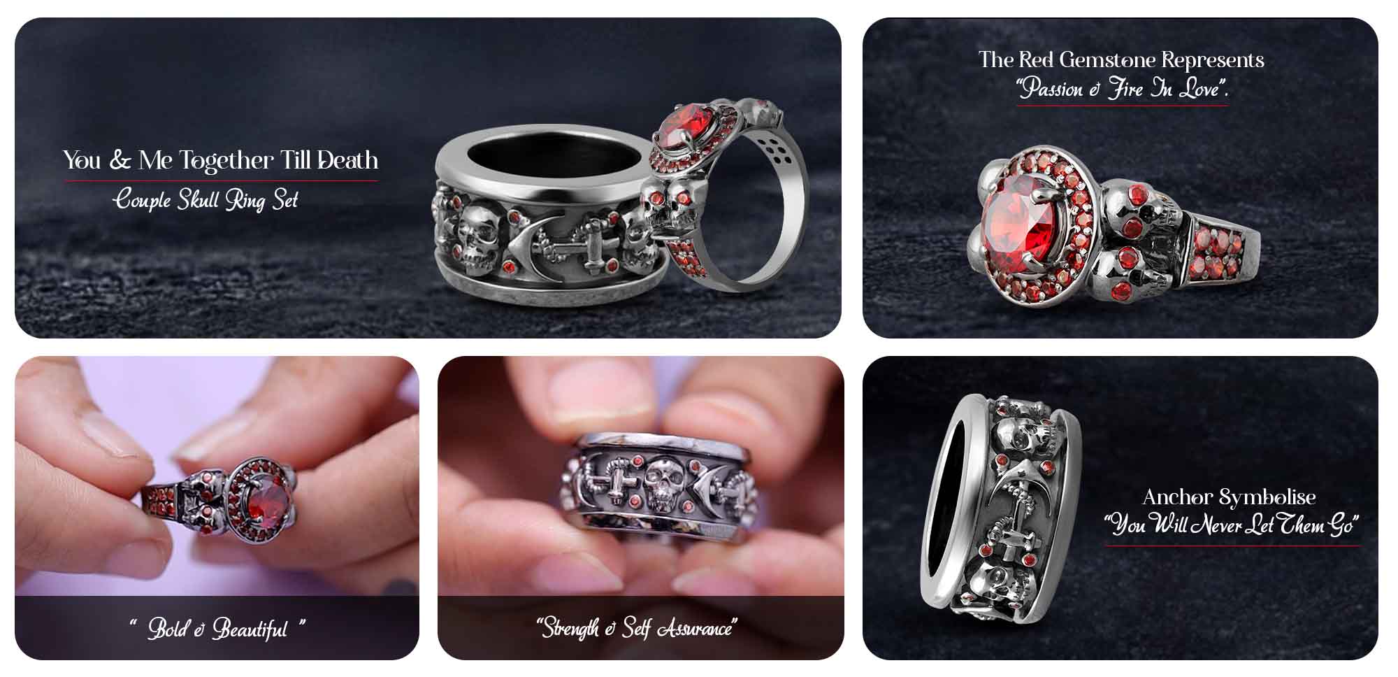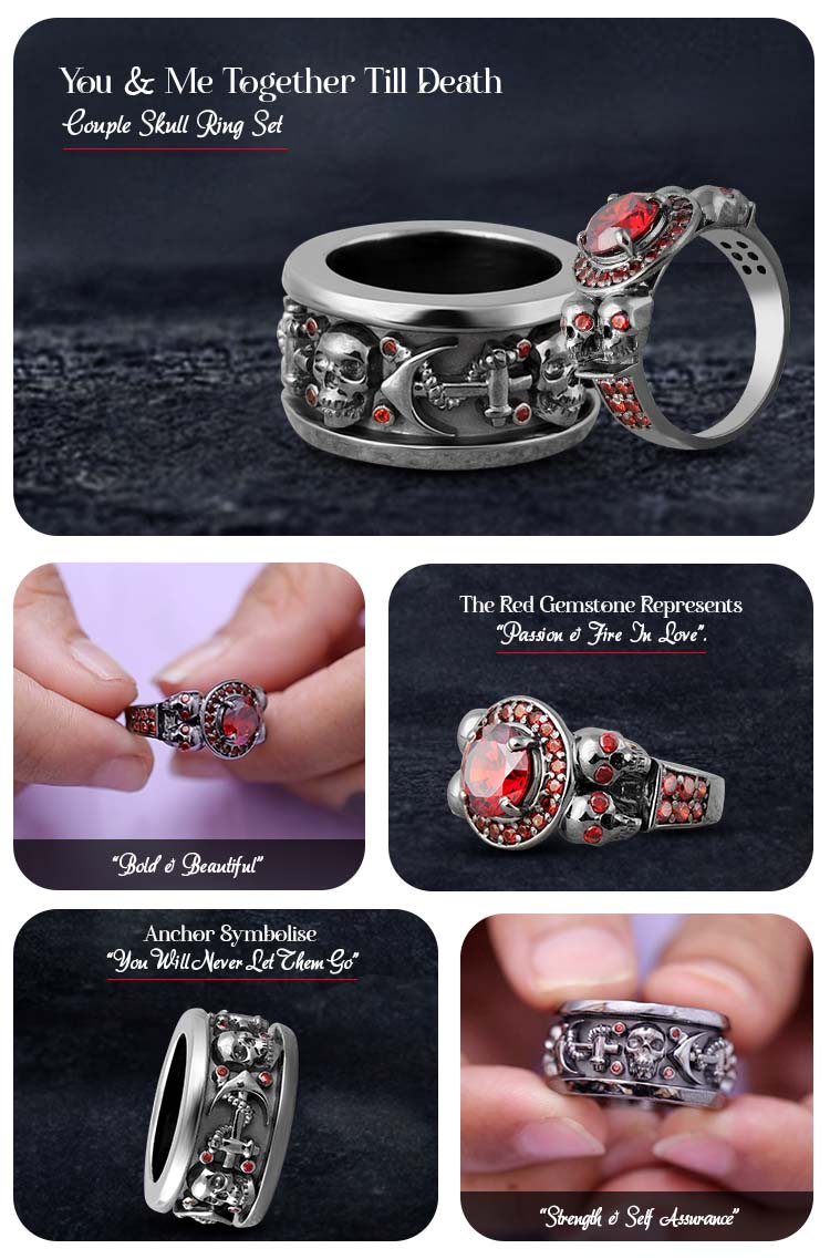 Learn moreRed Garnet Skull Couple Rings Matching Gothic Wedding Ring Set