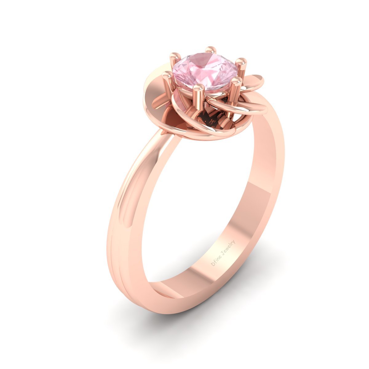 Rose Quartz Floral Engagement Ring Rose Gold Flower Ring For Her