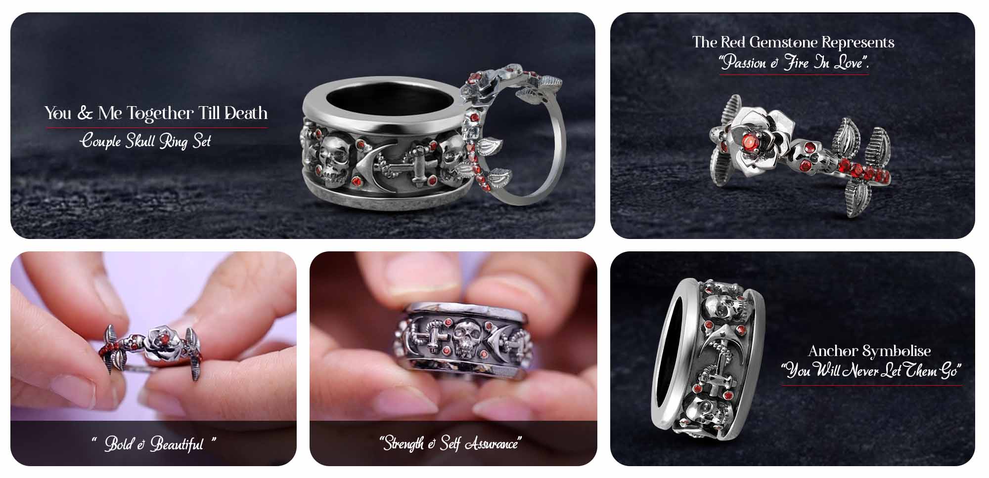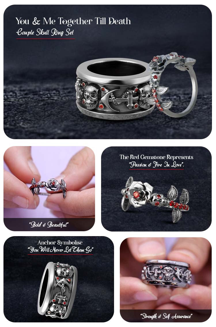 Learn moreRose Skull Engagement Ring Set His and Her Gothic Rings Couple