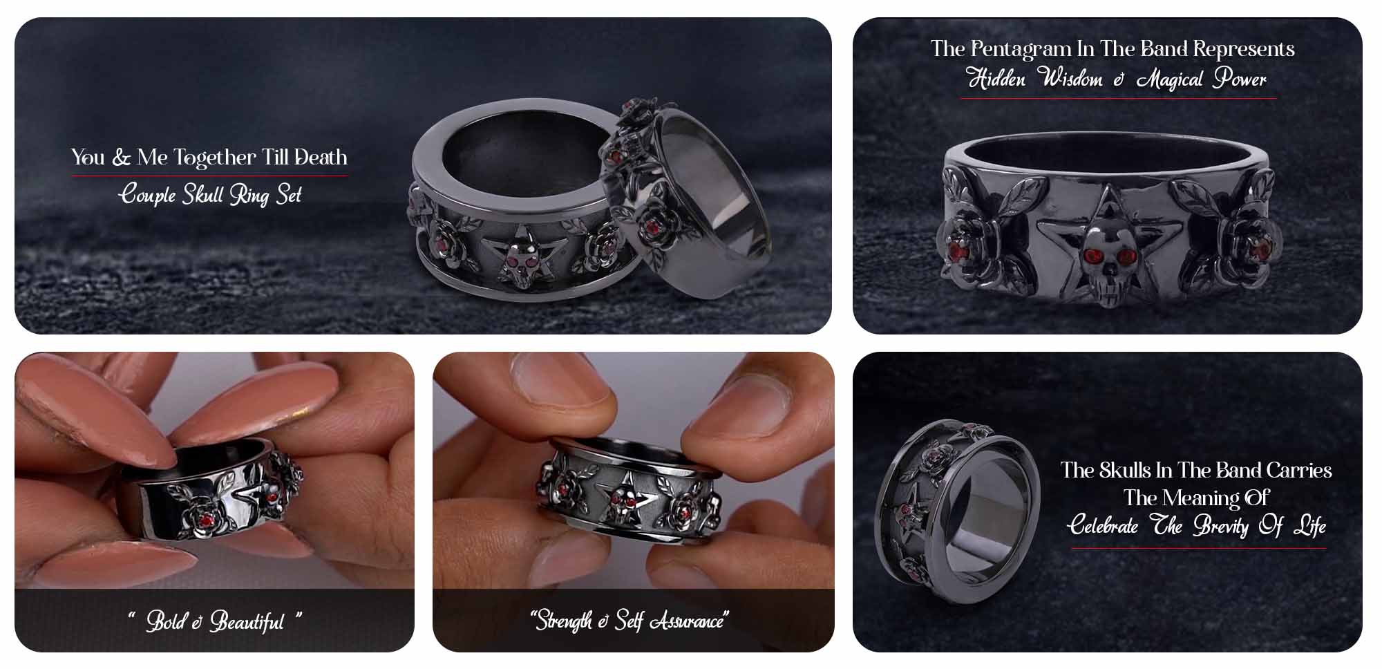 Five stars! This is our second anniversary, and these rings were the perfect gift. The detailing on the skulls is so intricate. They feel very solid and high-quality, Great craftsmanship, fast shipping, and beautiful packaging.