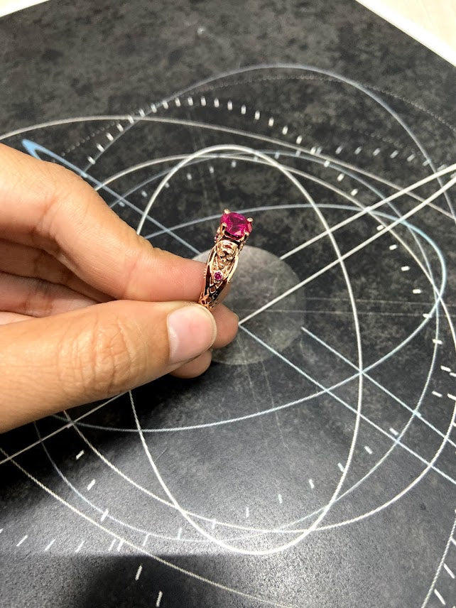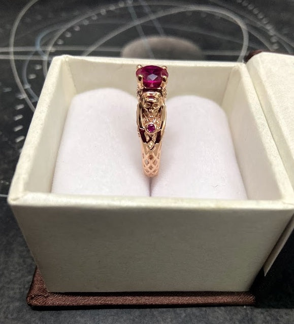 Ruby Gothic Skull Ring Mesh Skull Engagement Ring Solid Rose Gold