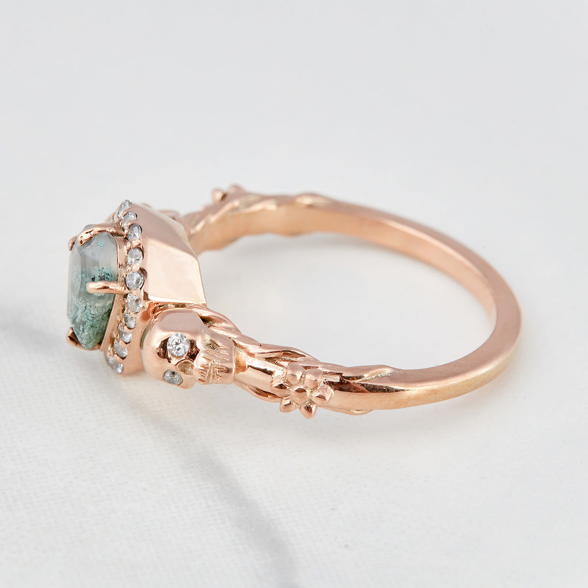Skull Coffin Engagement Ring Natural Moss Agate Jewelry Gothic