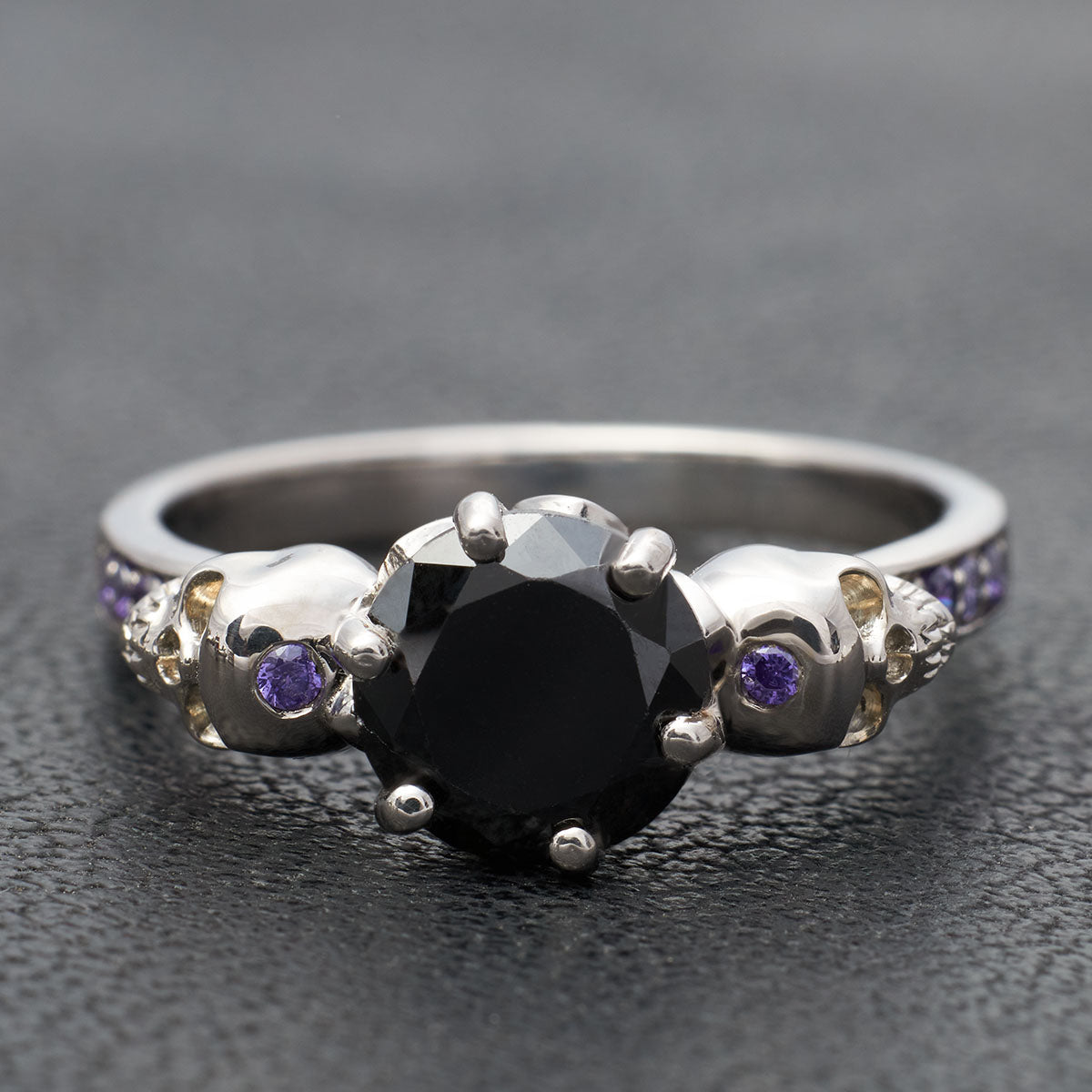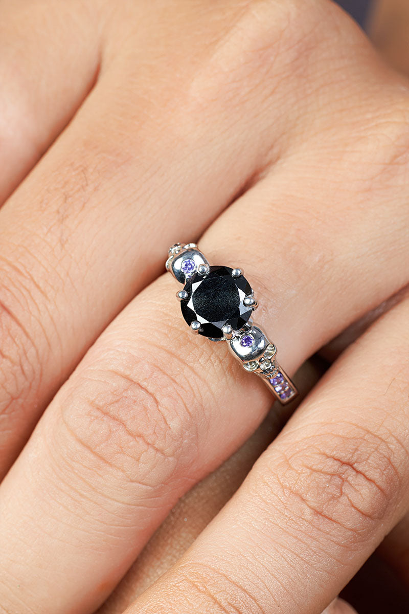 Skull Engagement Ring Womens Purple Black Stone Gothic Rings