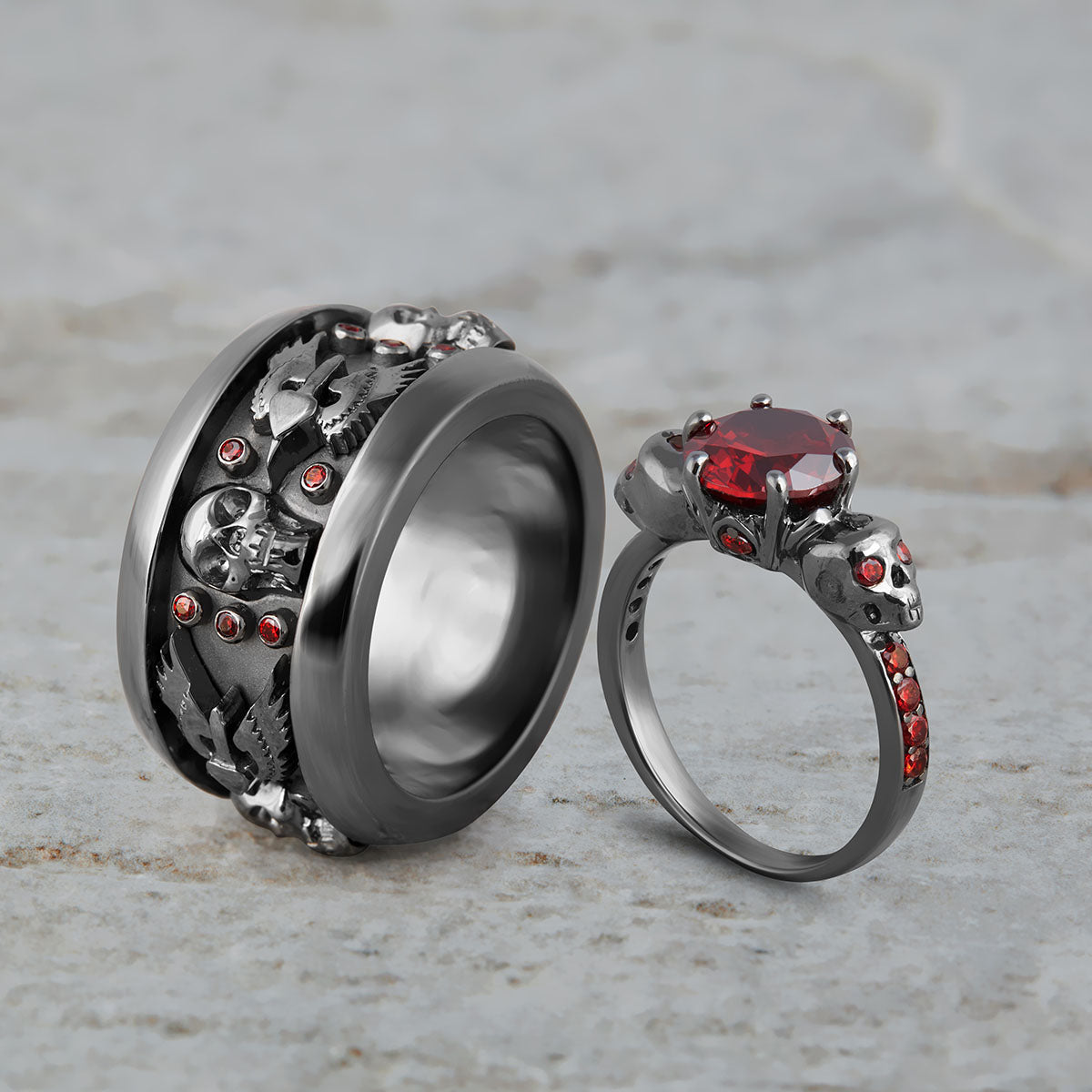 Learn moreSkull Gothic Engagement Ring Set His Her Couple Gun Metal Fn