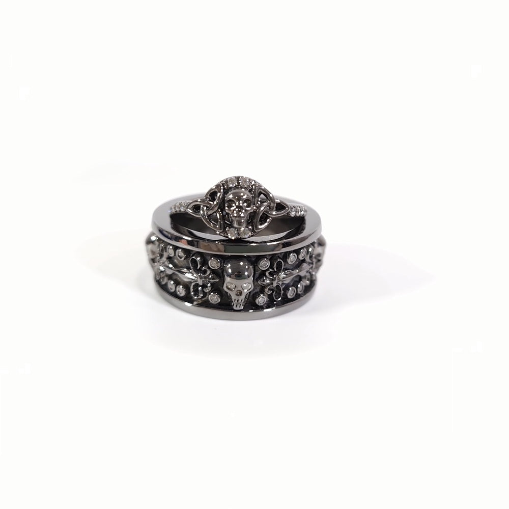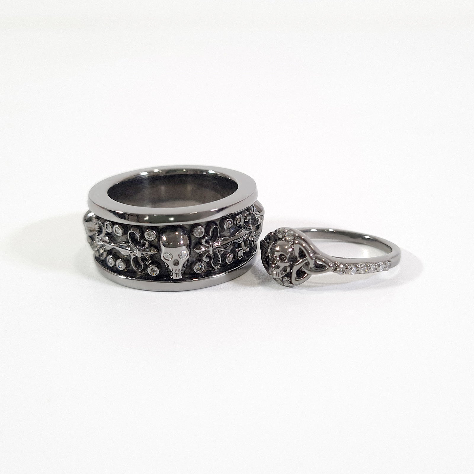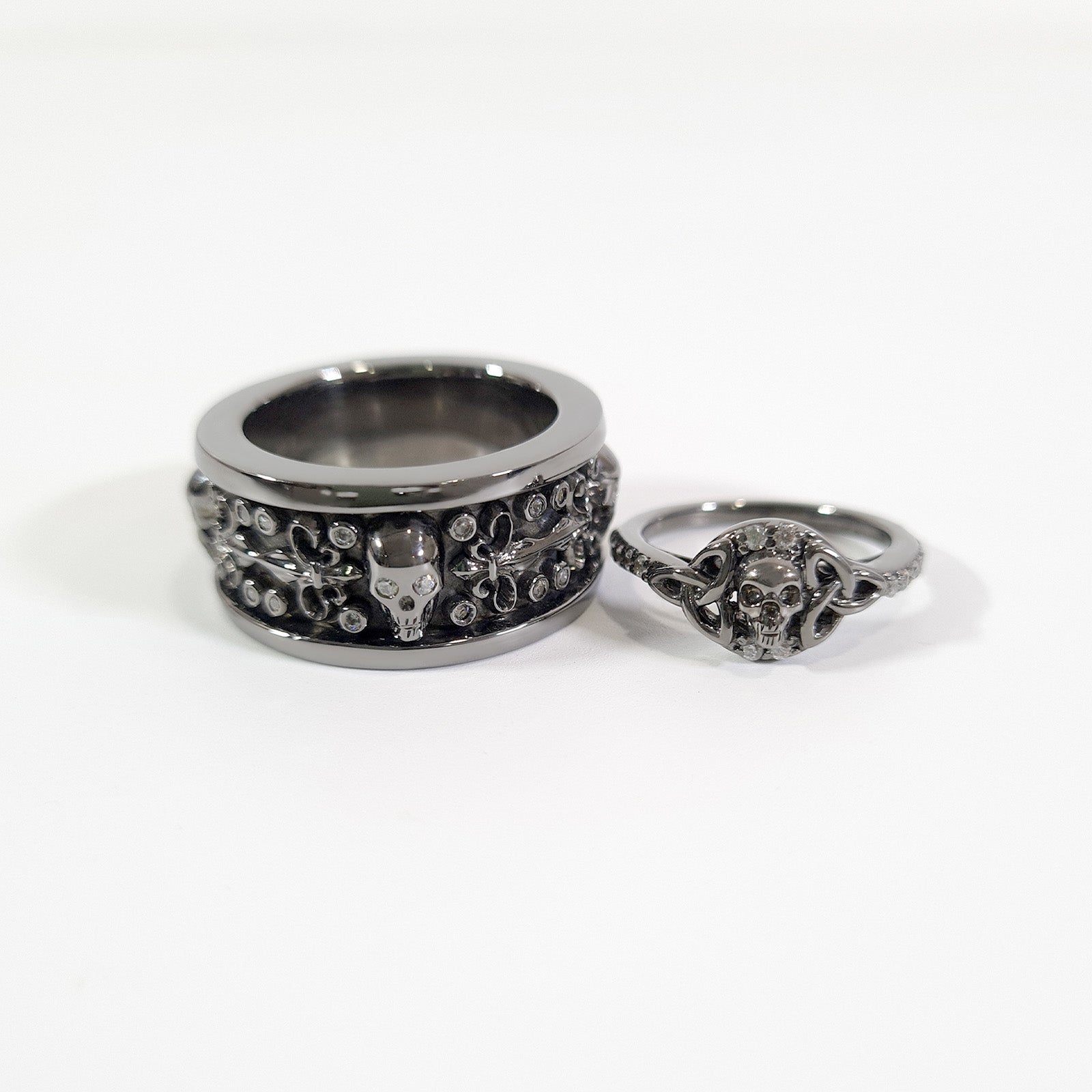 Skull Matching Promise Ring Set His and Her Gothic Skull Rings