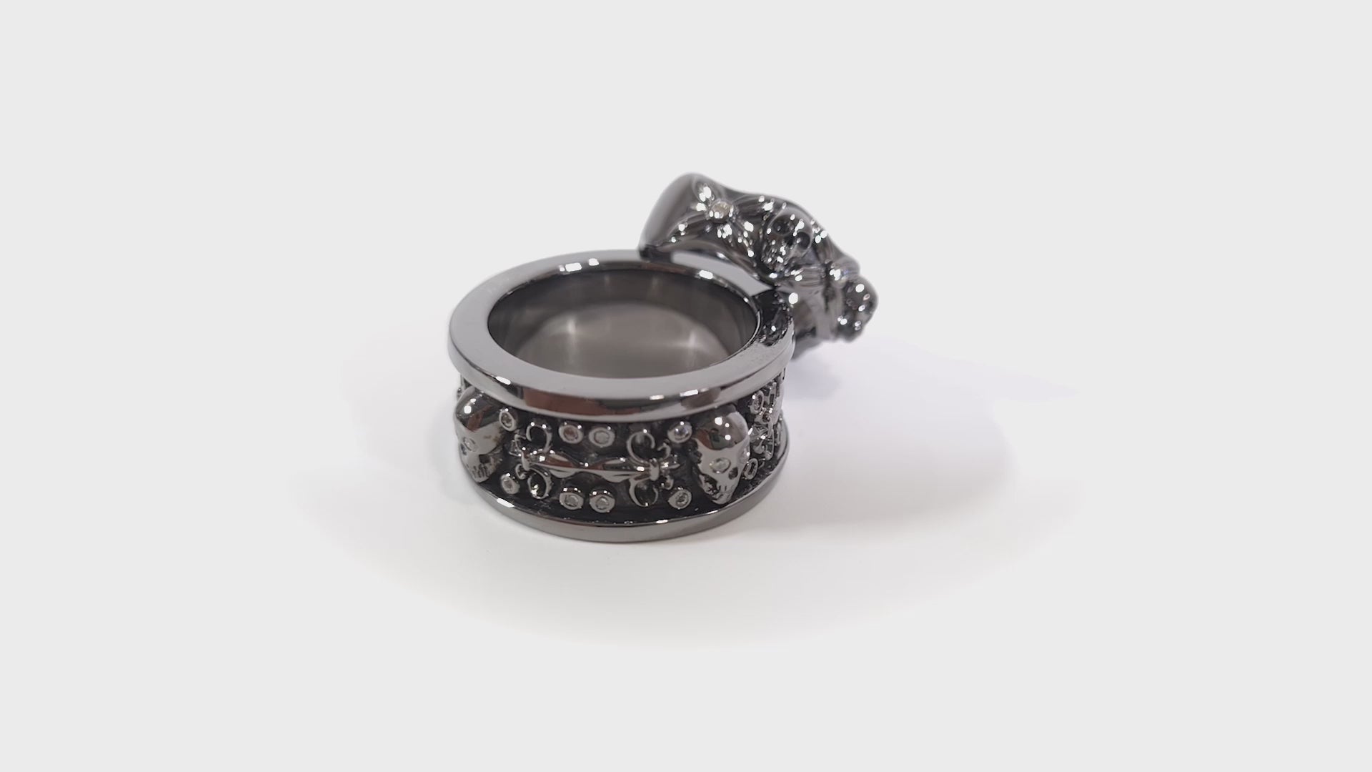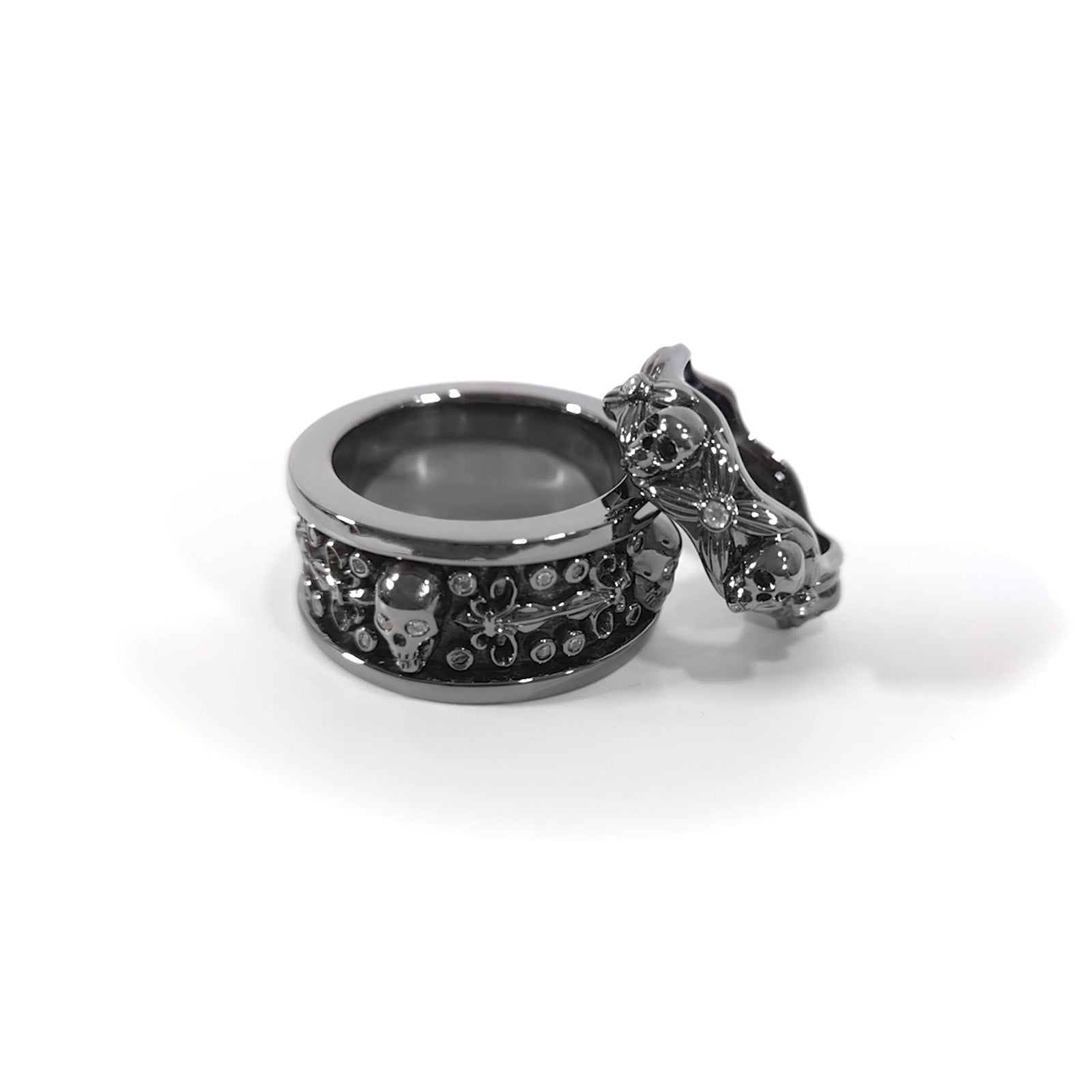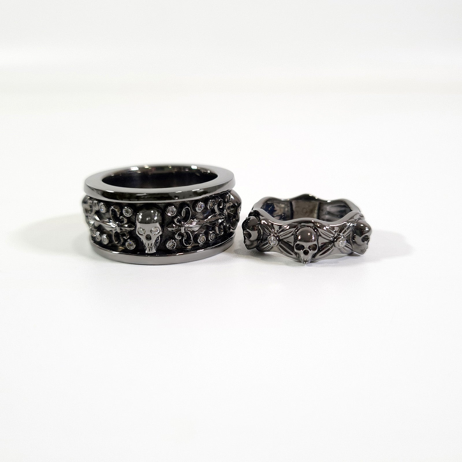 Skull Wedding Bands Set His and Her Flower Gothic Couple Silver