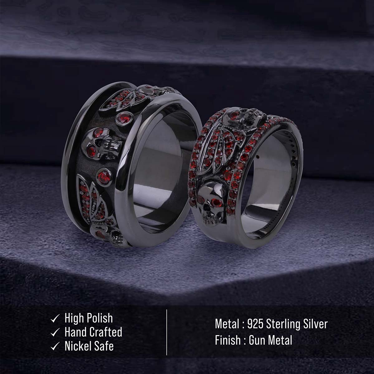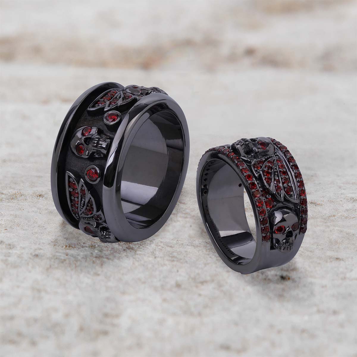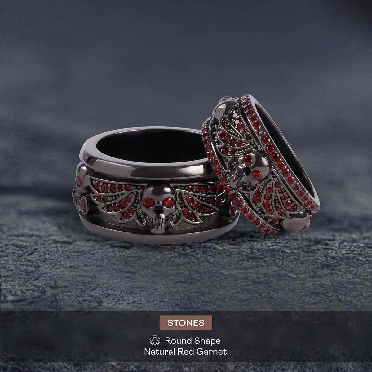 Learn moreSkull Wings Wedding Ring Set Natural Garnet Gothic Couple Rings