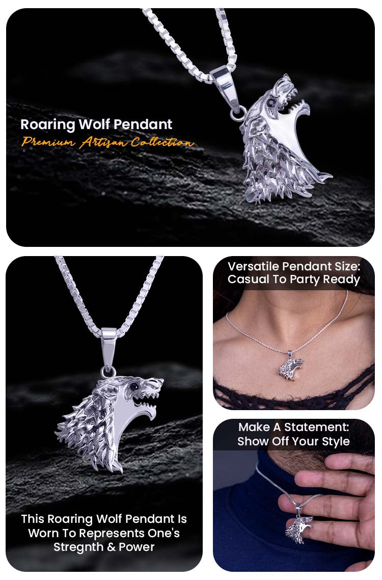 Learn moreSterling Silver Wolf Necklace Pendant with Chain Fenrir Jewelry