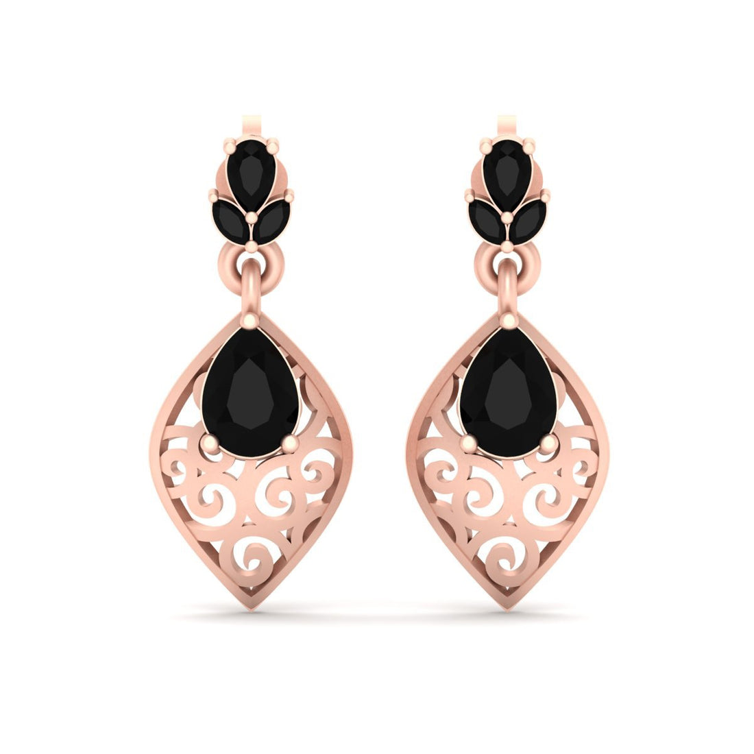 Rose Gold Engagement Earrings Pear Cut Black Onyx Dangle Earrings