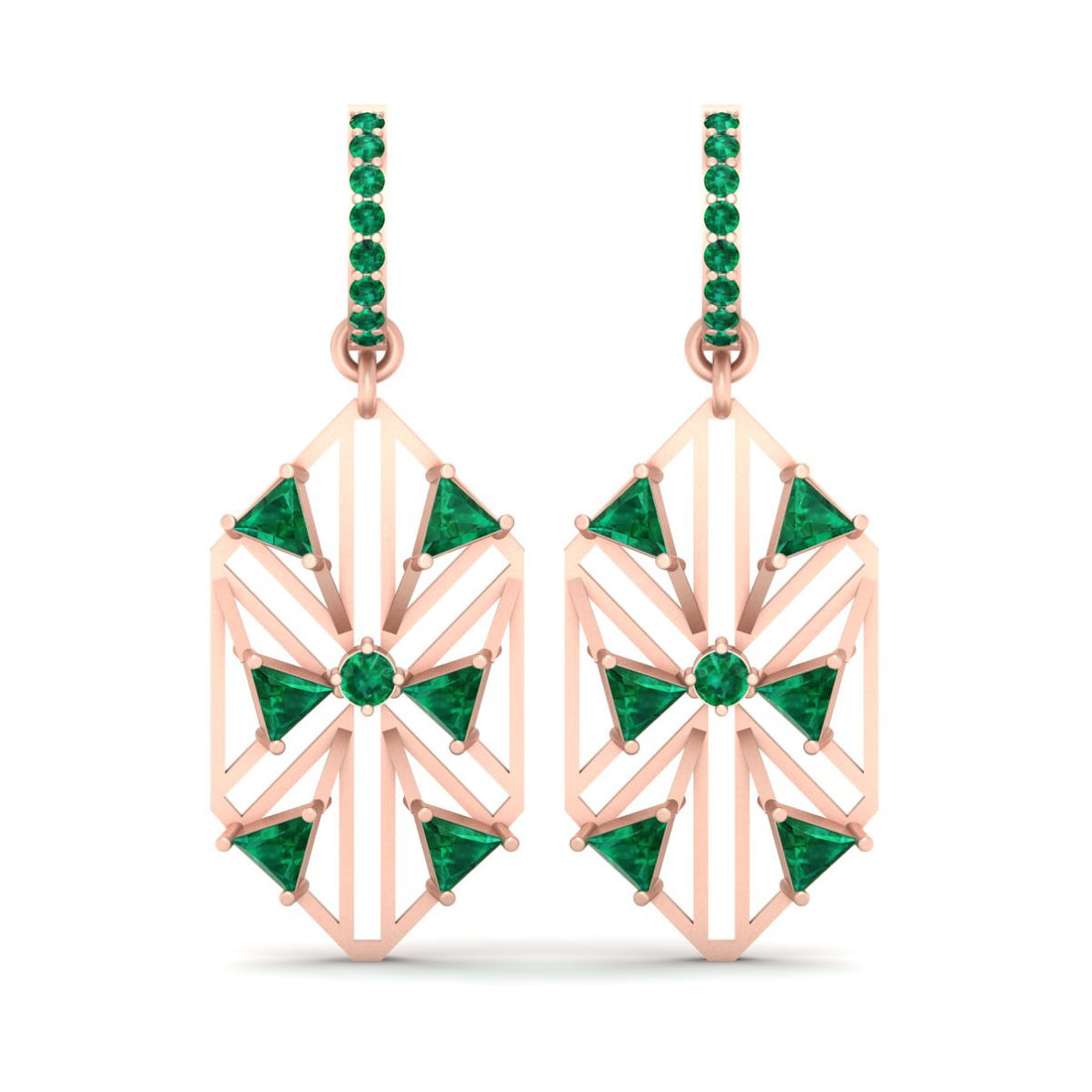 Rose Gold Hoop Earrings Green CZ Dangle Hoop Engagement Earrings
