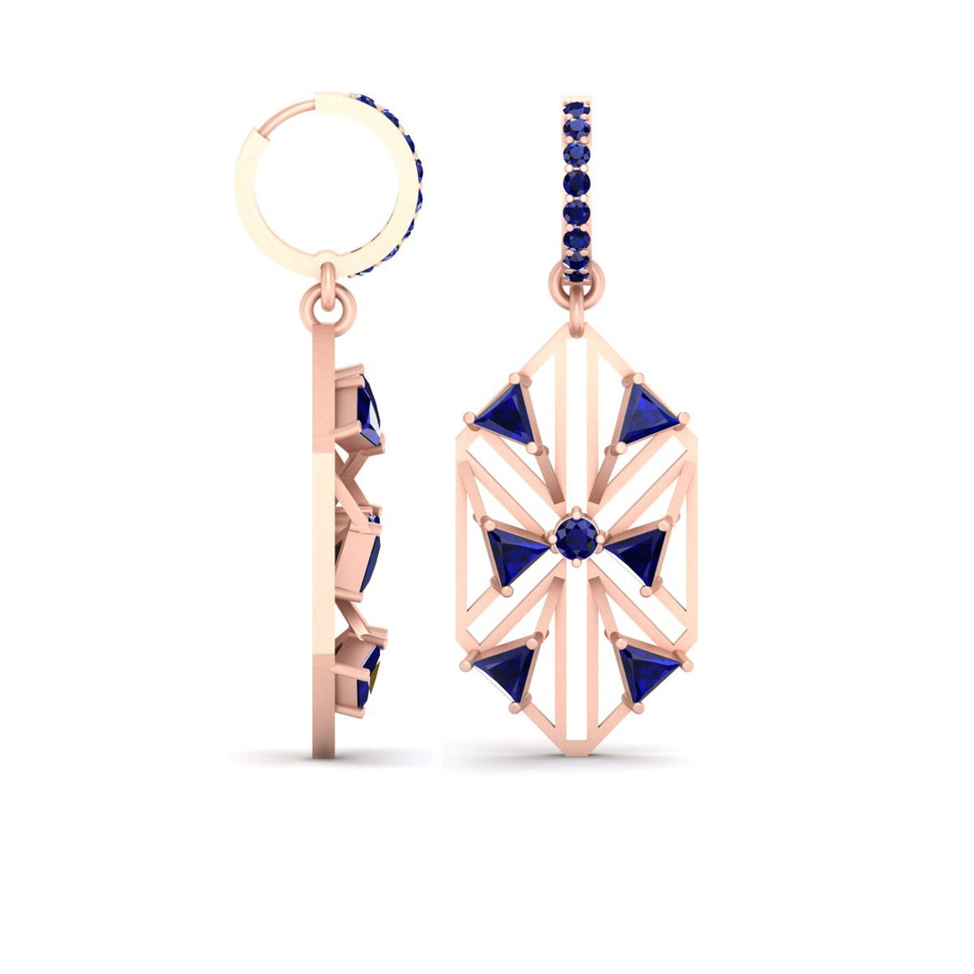 Hexagon Dangle Hoop Earrings Triangle Cut Blue Sapphire Hoop Earrings