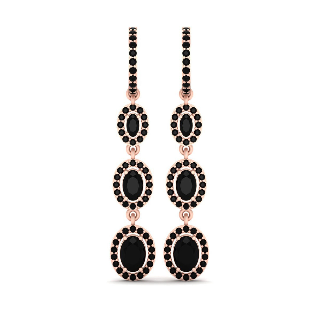 Rose Gold Chandelier Earrings Black Diamond Halo Engagement Earrings