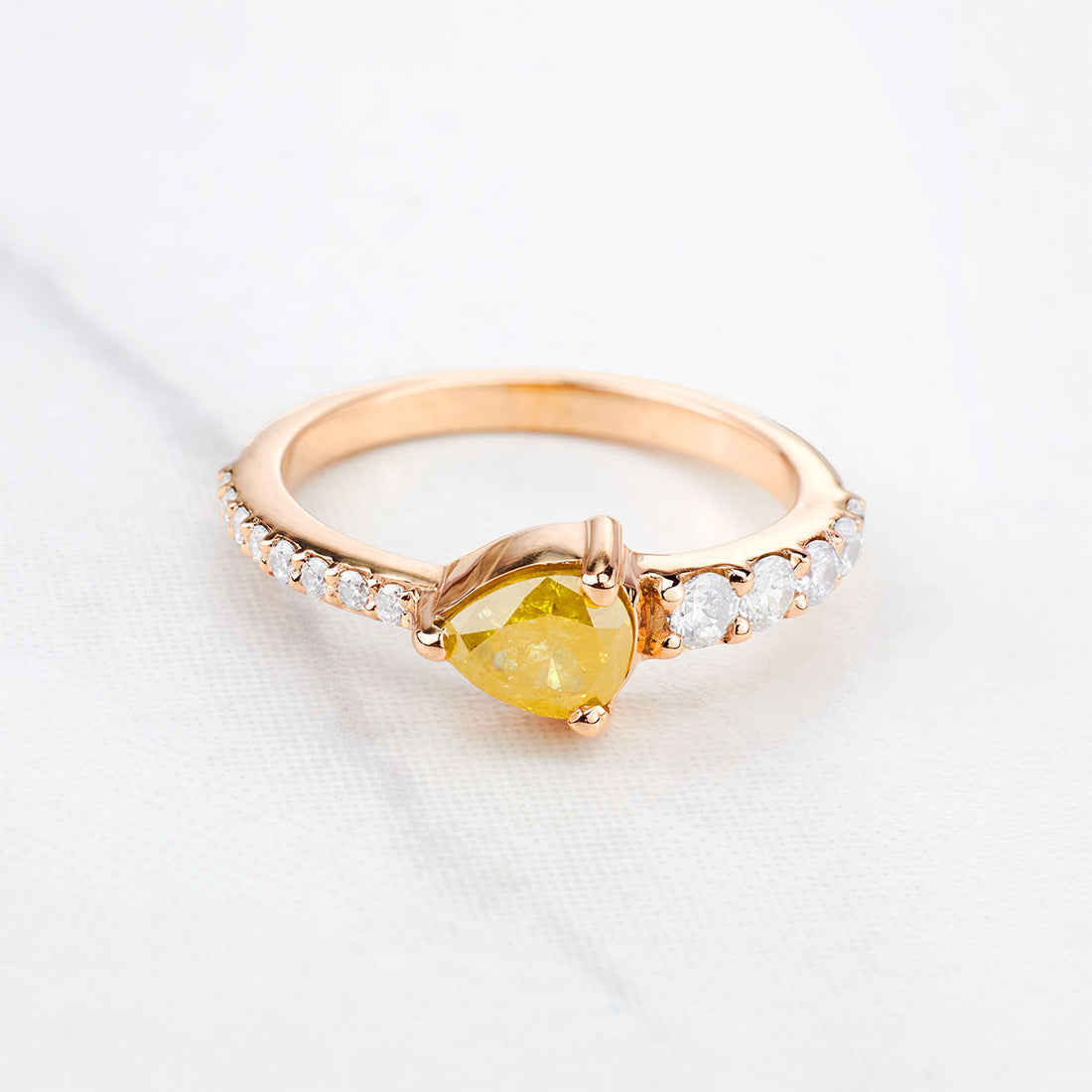 Teardrop Yellow Rustic Diamond Ring Pear Cut Engagement Rings