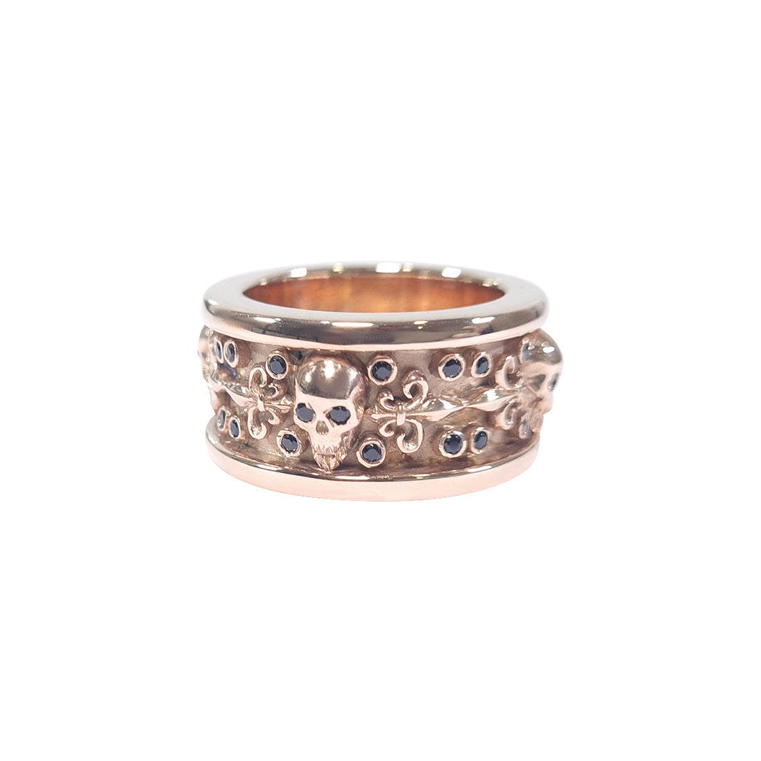 Rose Gold Skull Engagement Band Fleur De Lis Skull Band Biker Badass