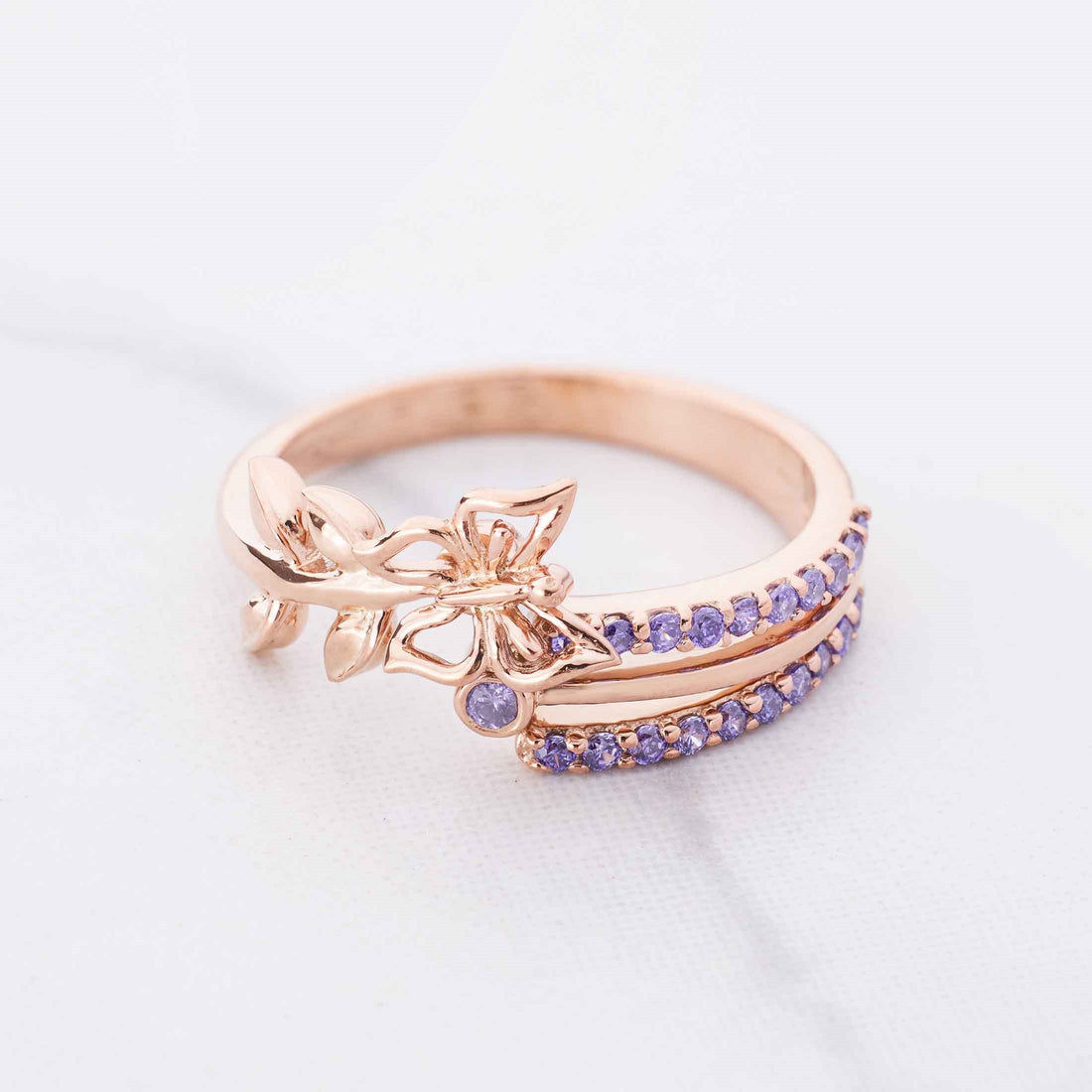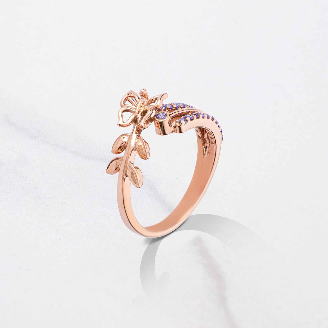 Purple Amethyst Butterfly Ring Rose Gold Nature Inspired Jewelry