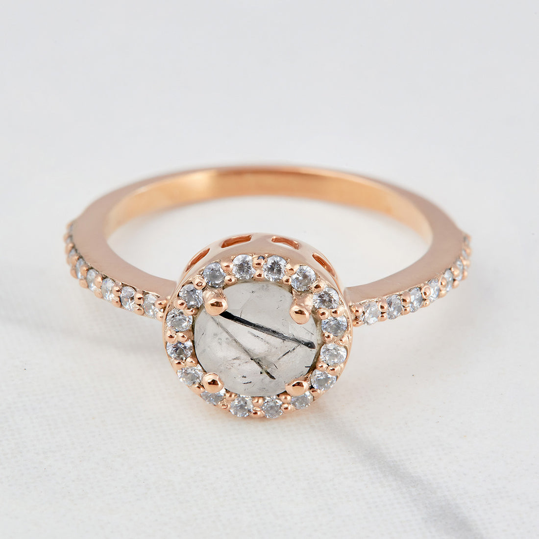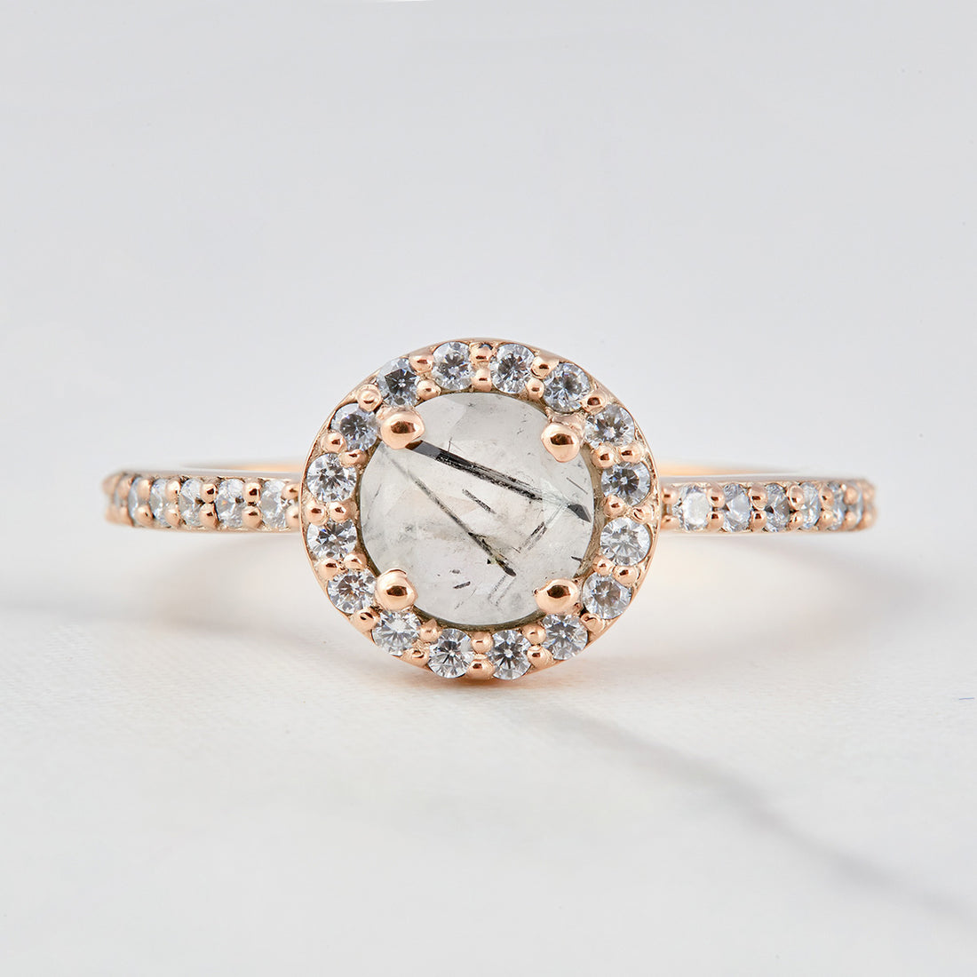 Rutile Quartz Engagement Ring for Women Halo Promise Ring
