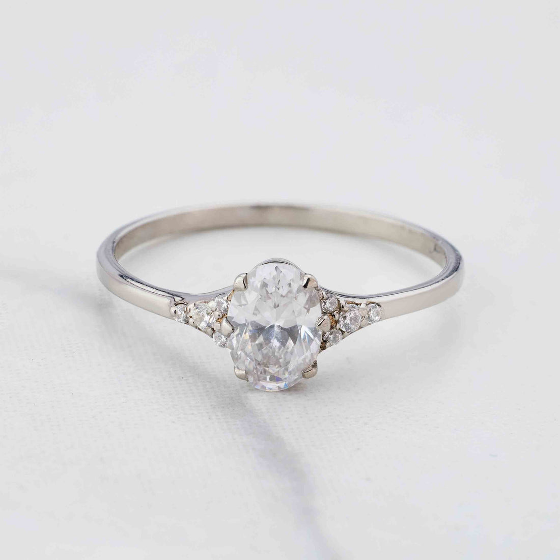 SPECIFICATION Oval Cut Diamond Engagement Rings for Women, Oval and Round Cut Approx 0.85TCW White...