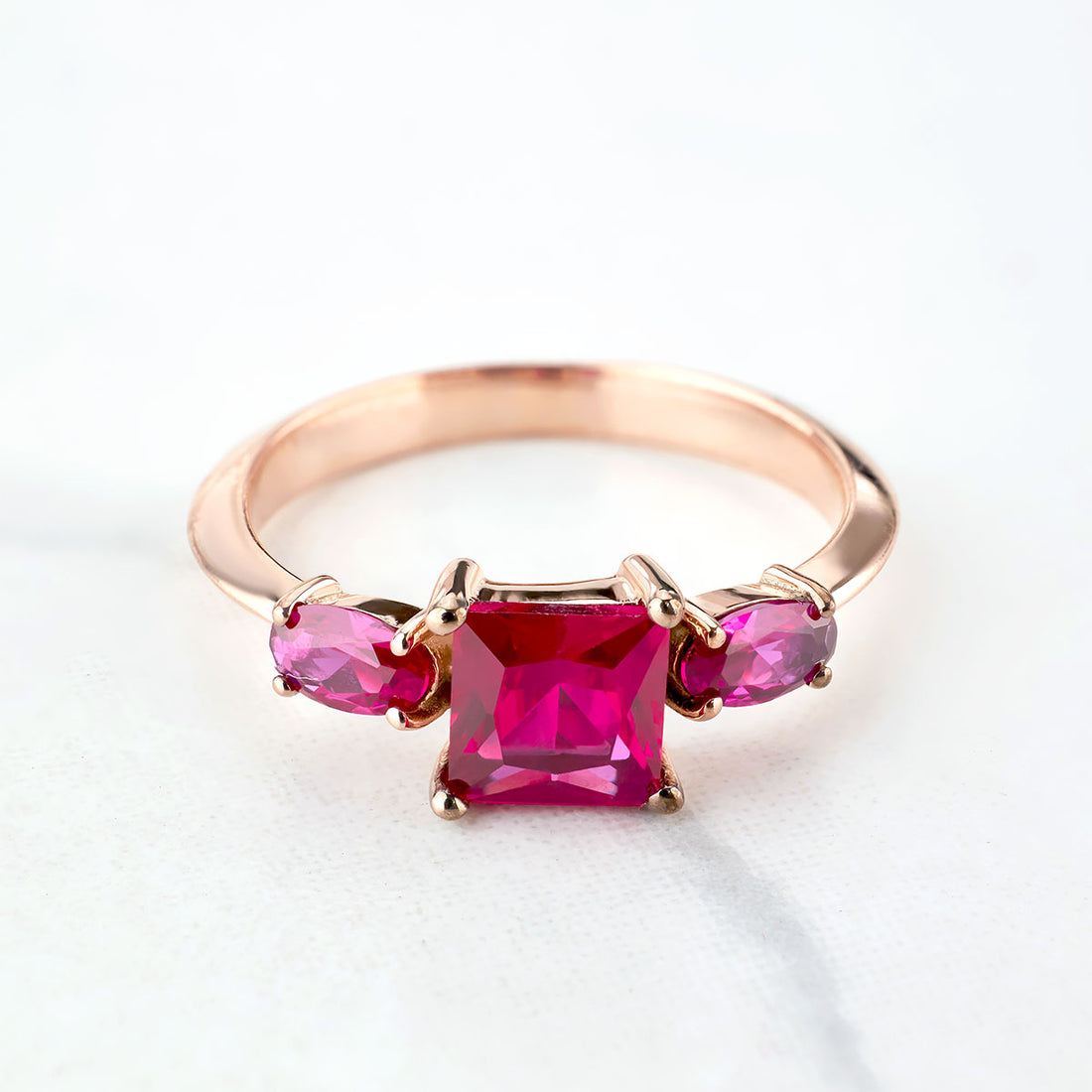 Pink Ruby Promise Ring July Birthstone Triangle Baguette Shape