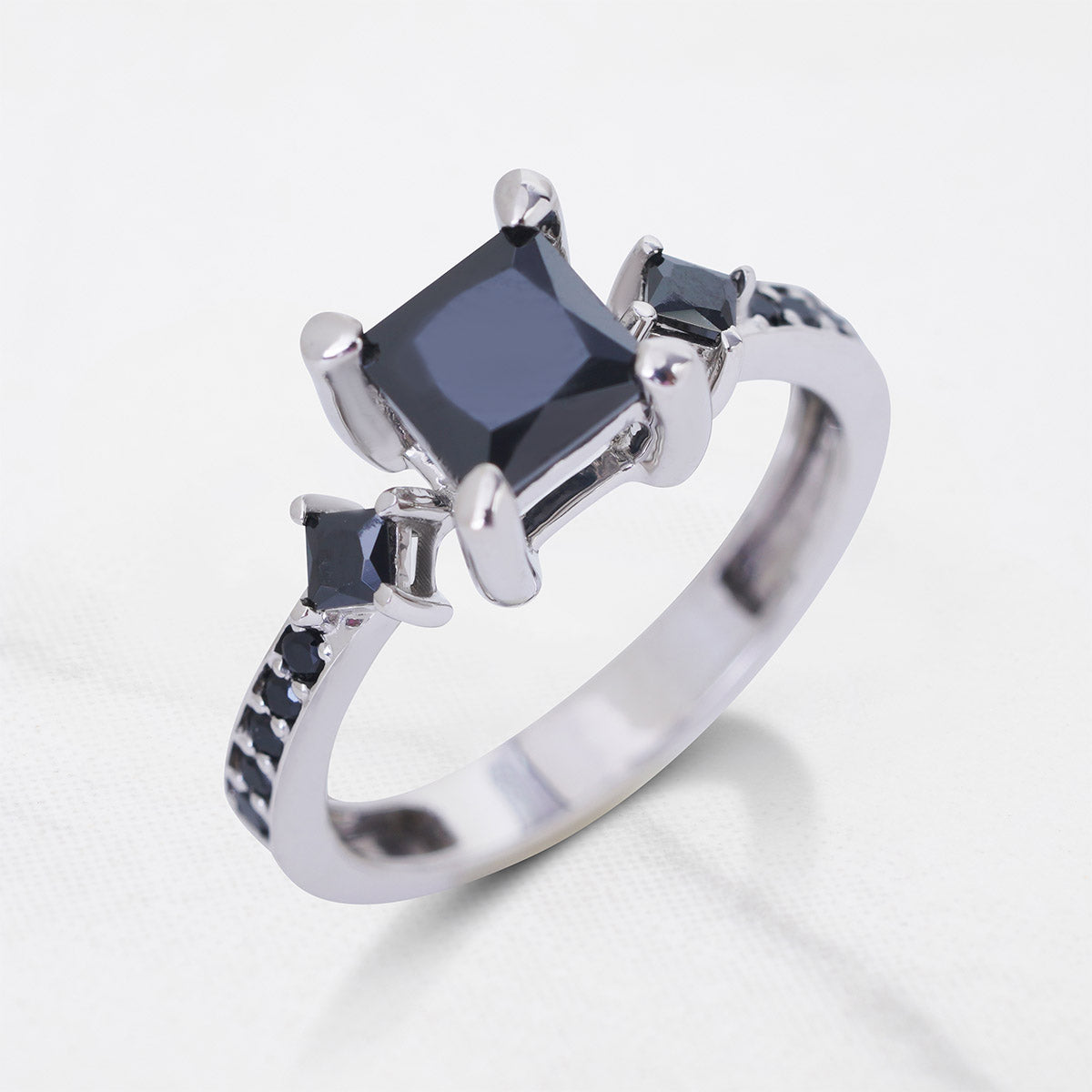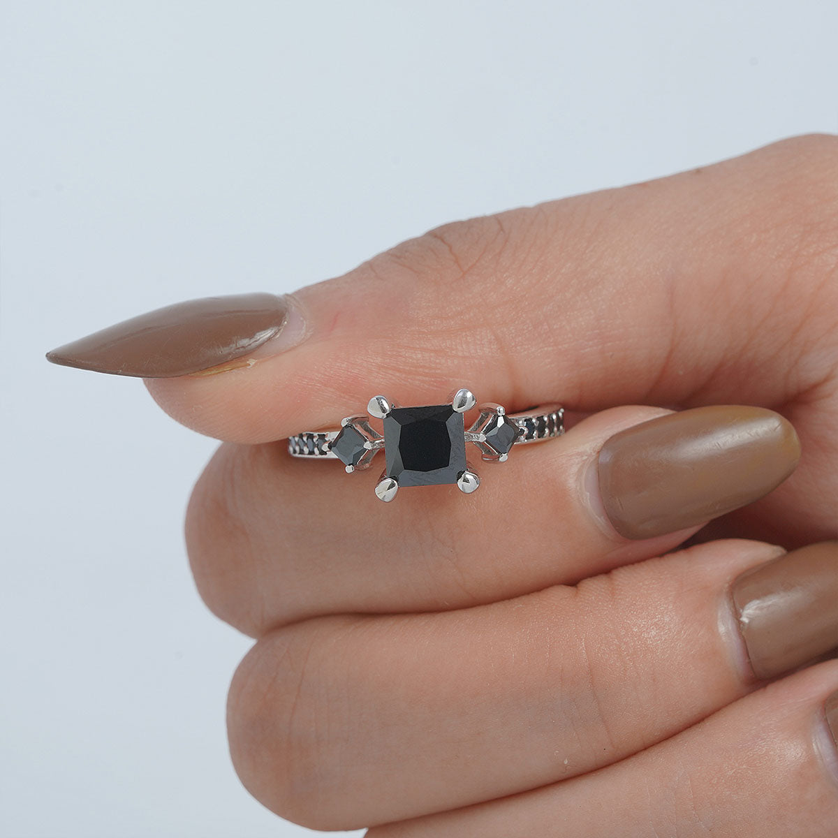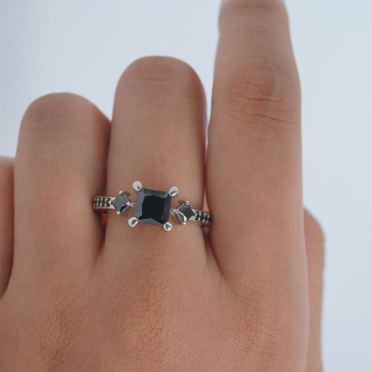 Black Spinel Gothic Engagement Ring 3 Stone Promise Ring