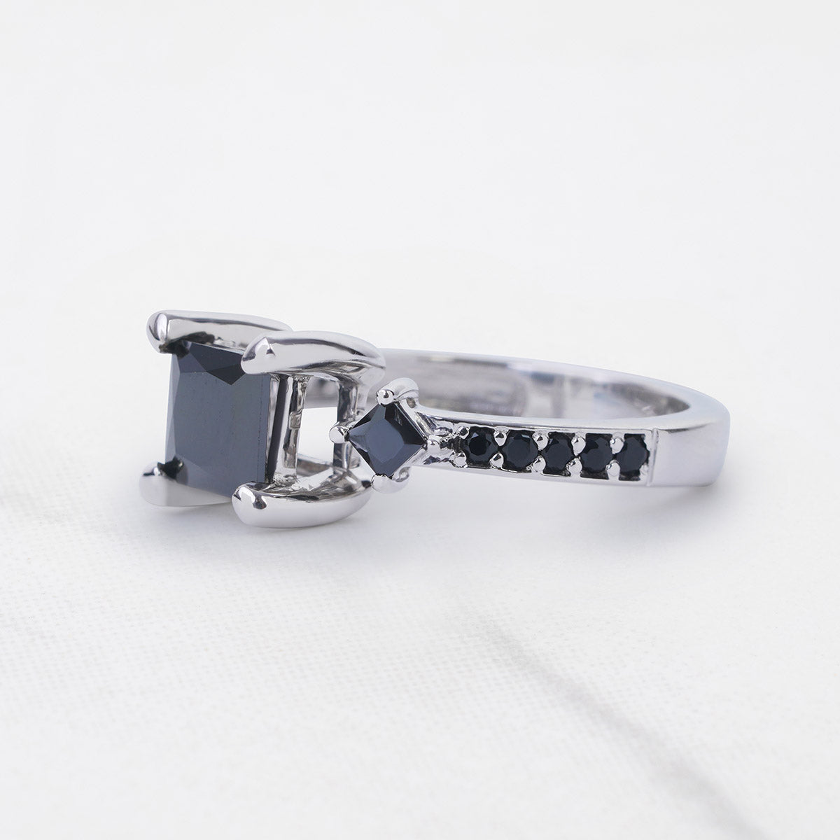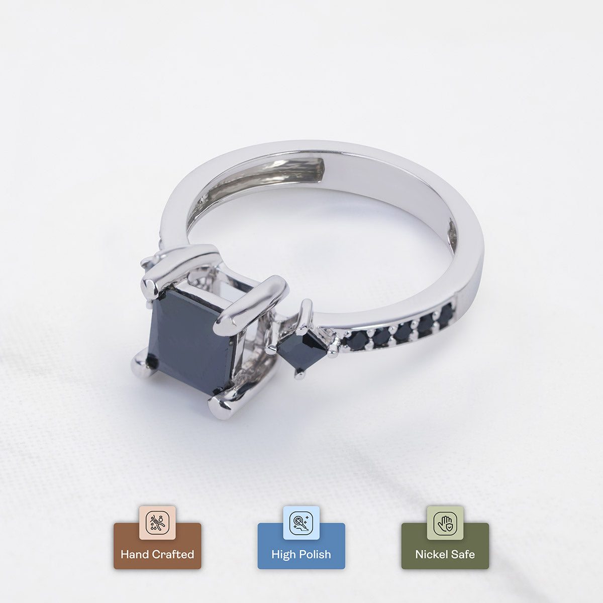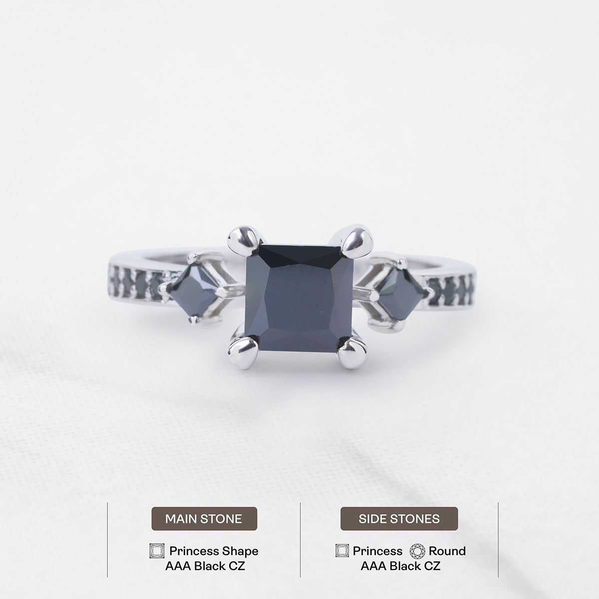 Black Spinel Gothic Engagement Ring 3 Stone Promise Ring
