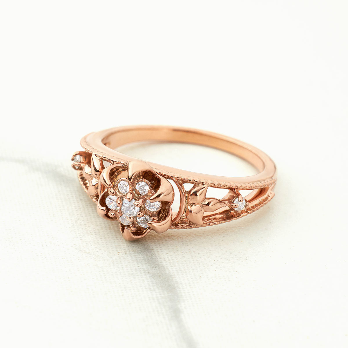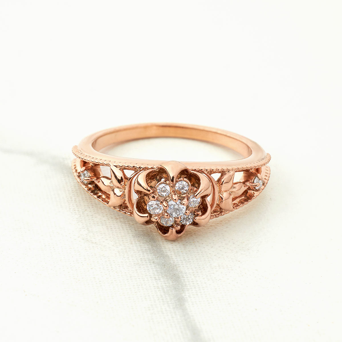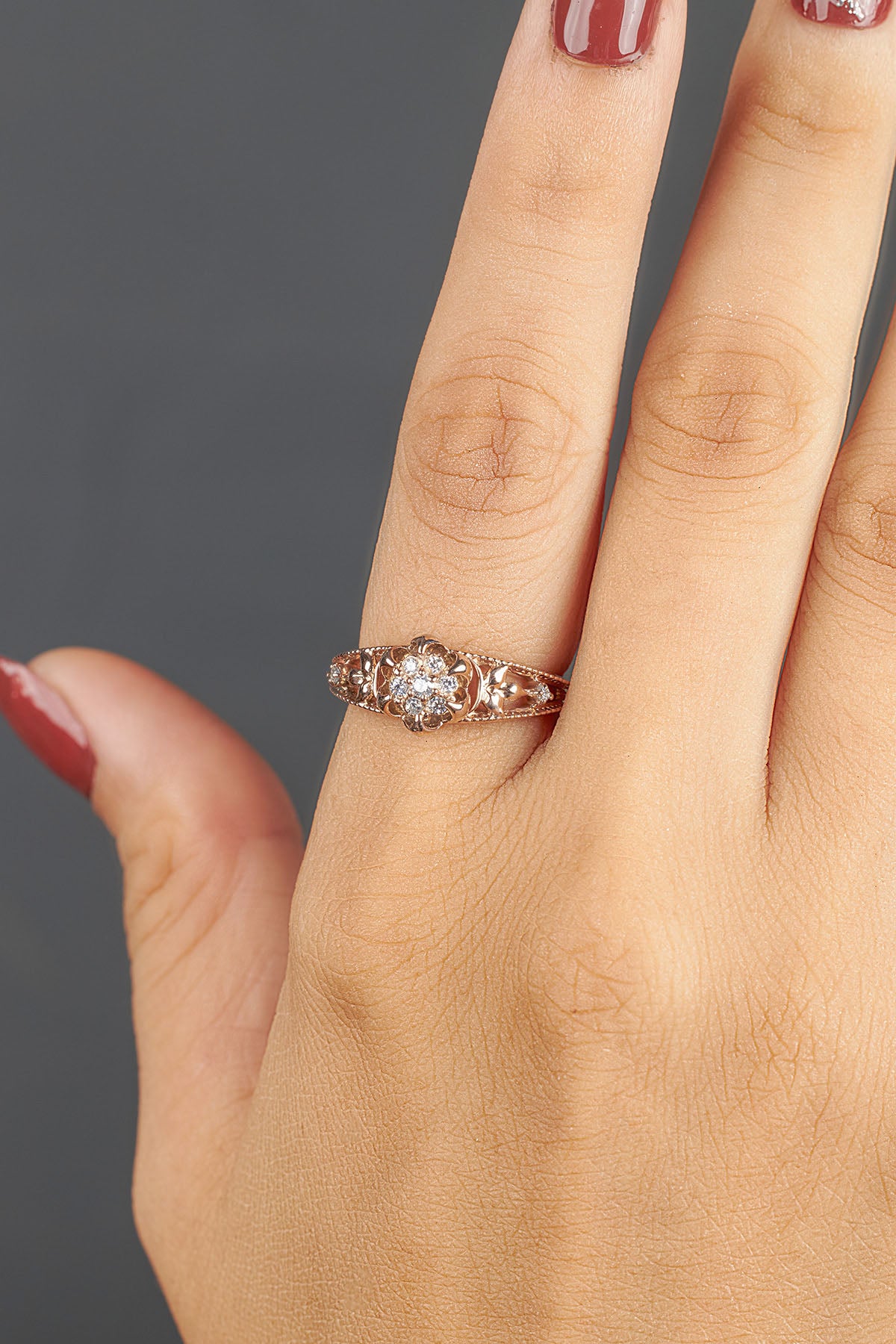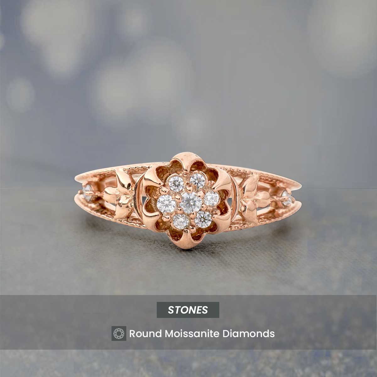 Cluster Moissanite Blossom Flower Engagement Ring Rose Gold