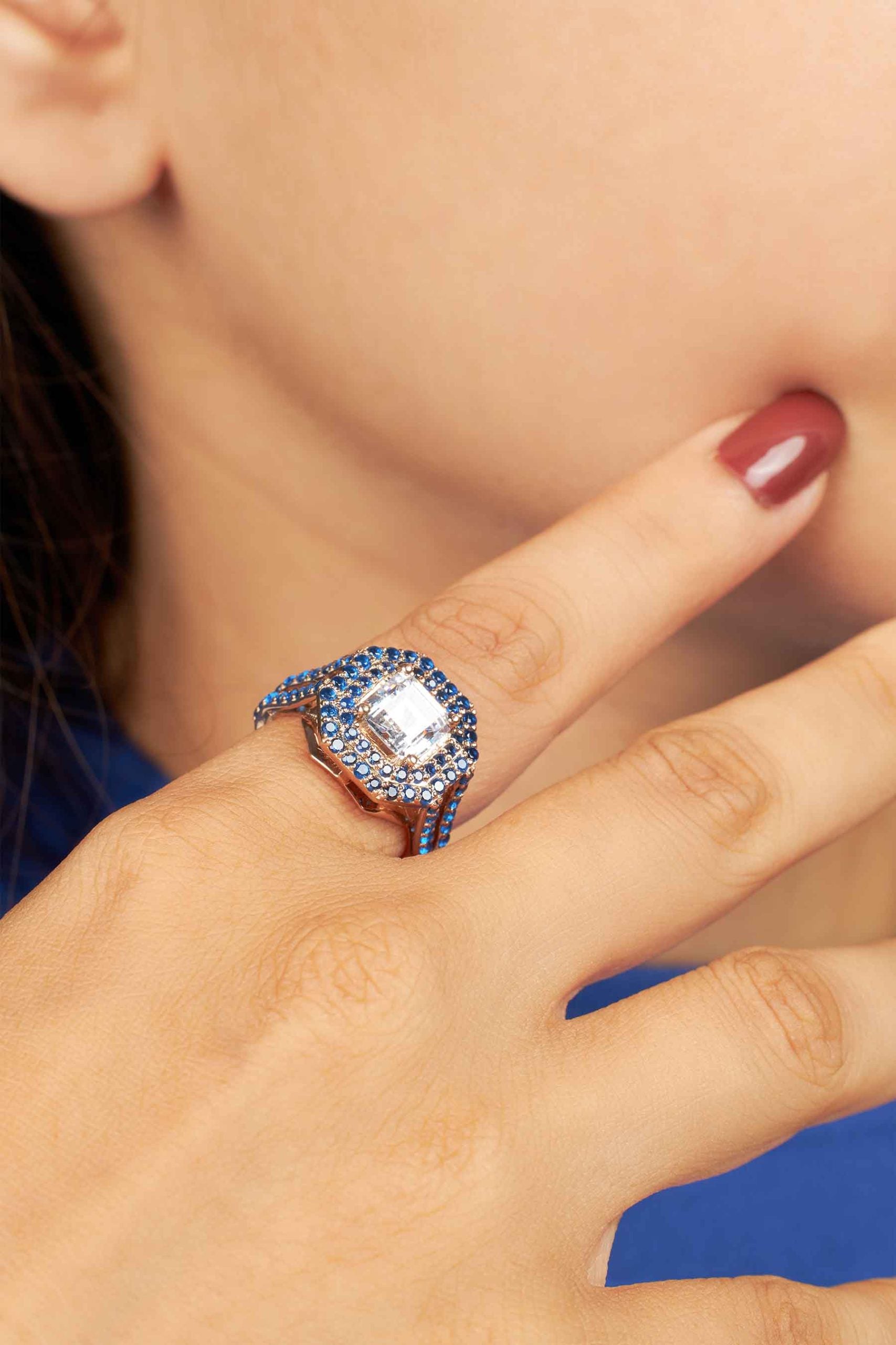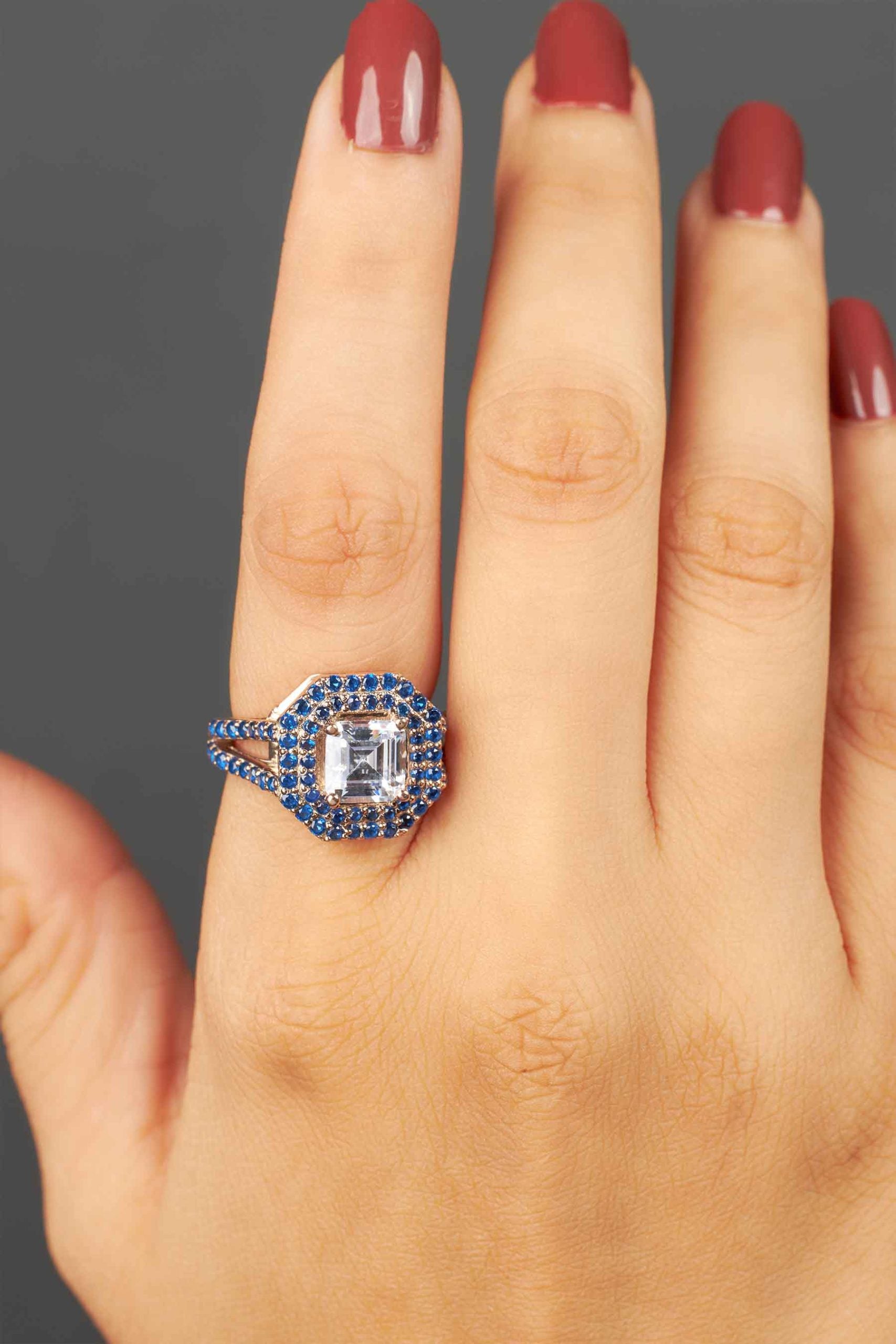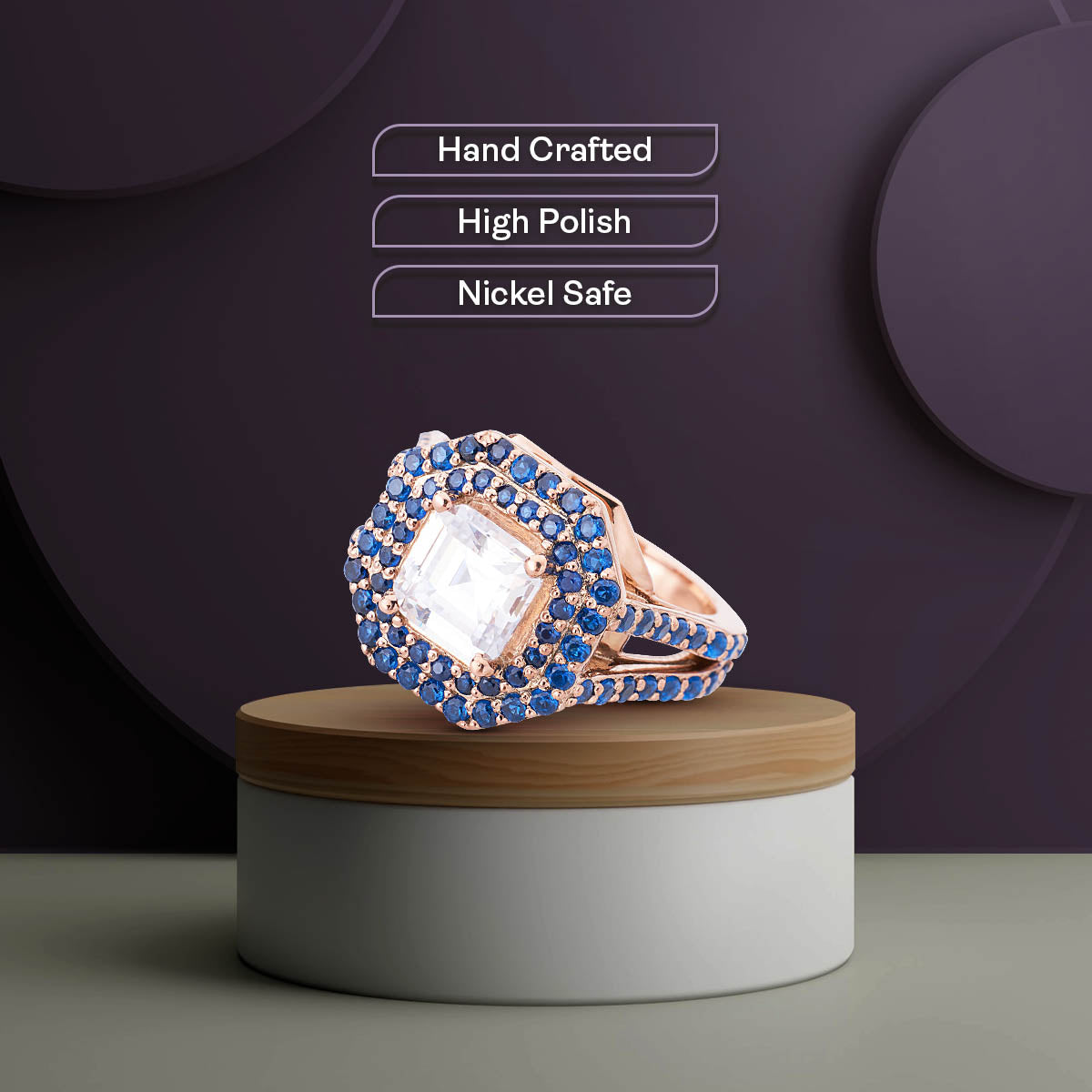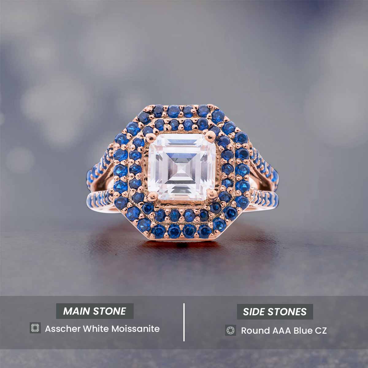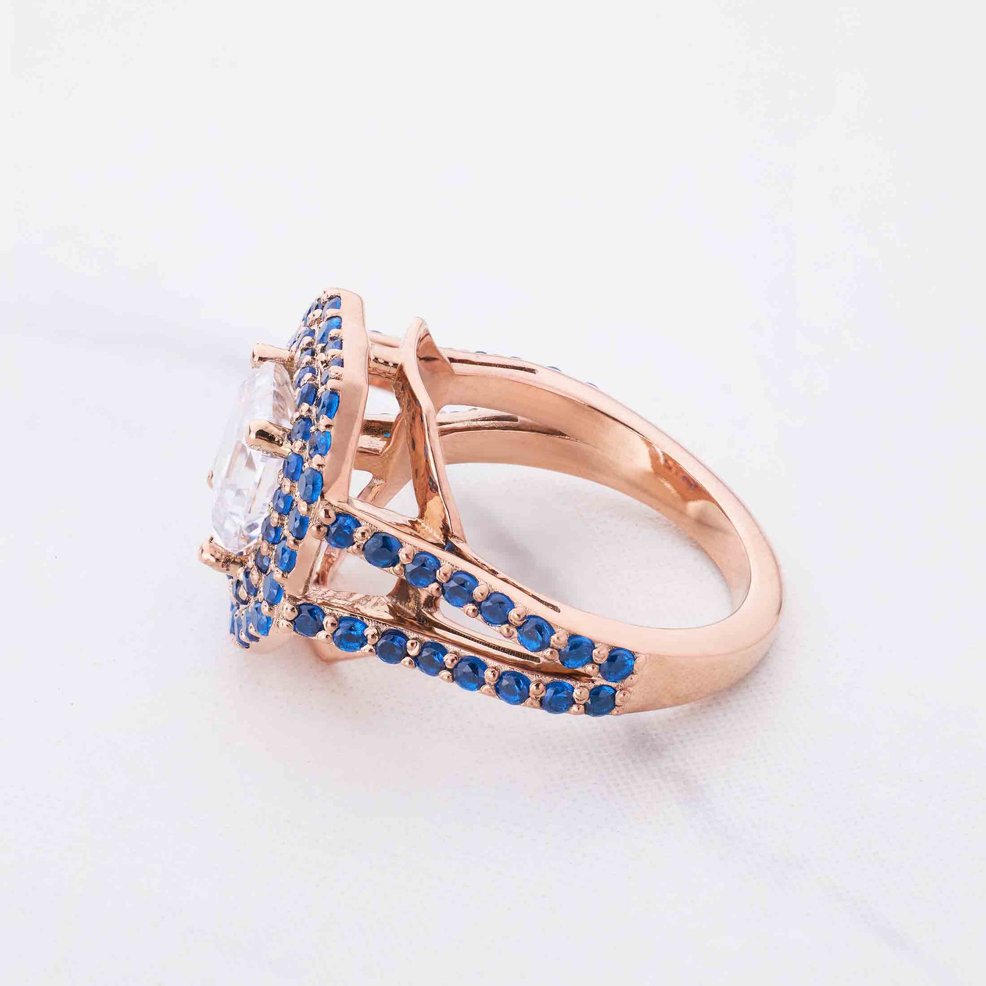 Double Halo Moissanite Ring Cocktail Engagement Ring Rose Gold