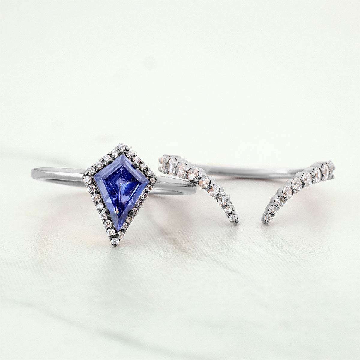 Learn moreHalo Blue Titanic Kite Engagement Ring Set 14k Gold Bridal Rings