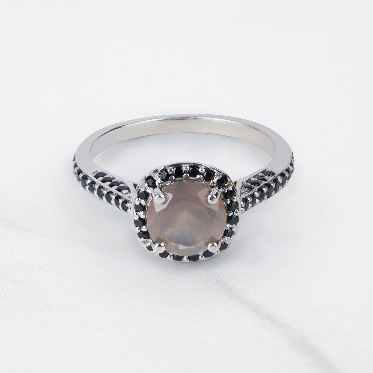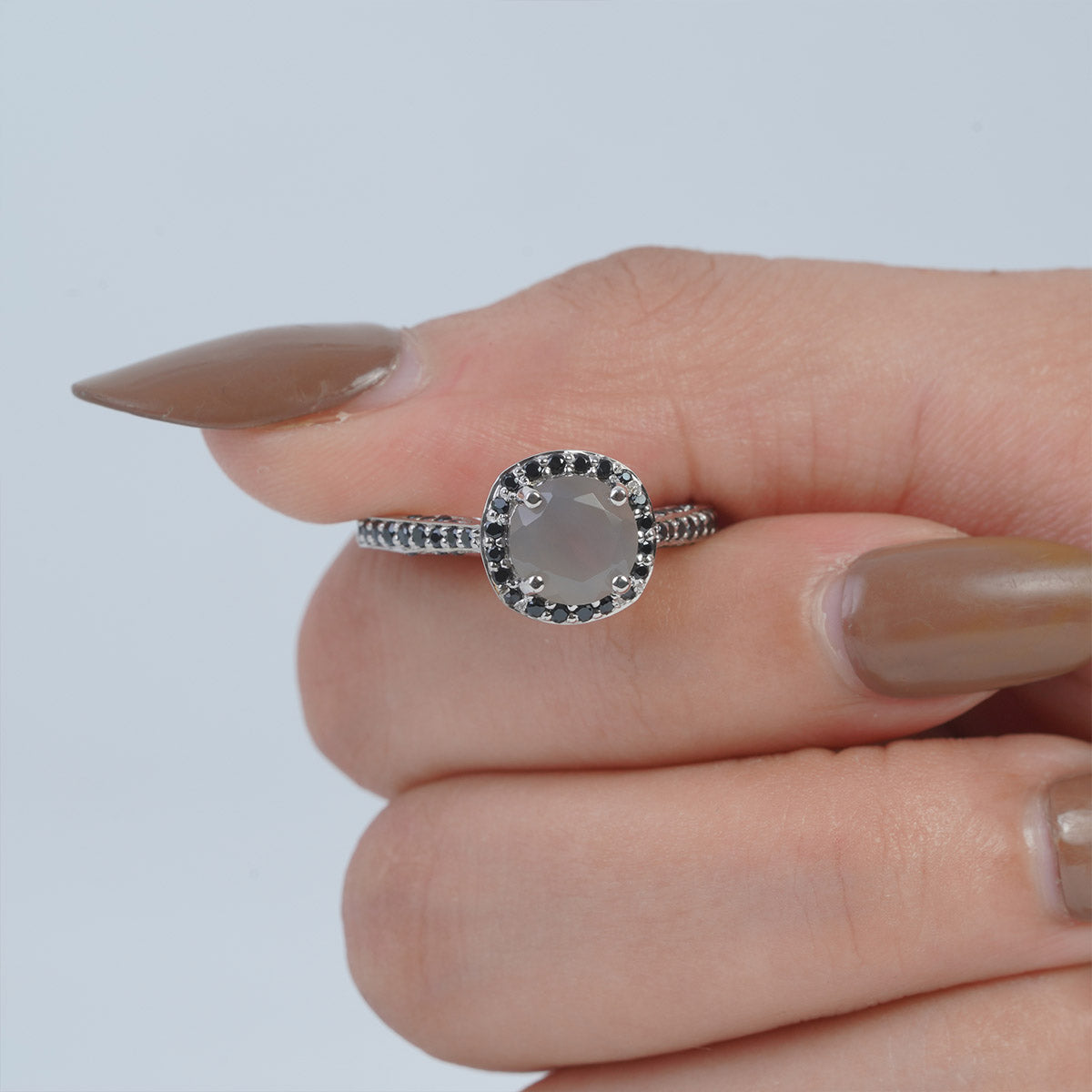 Halo Grey Moonstone Rings 14k White Gold Engagement Ring
