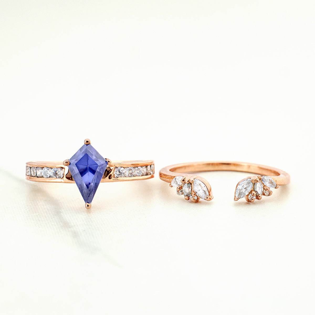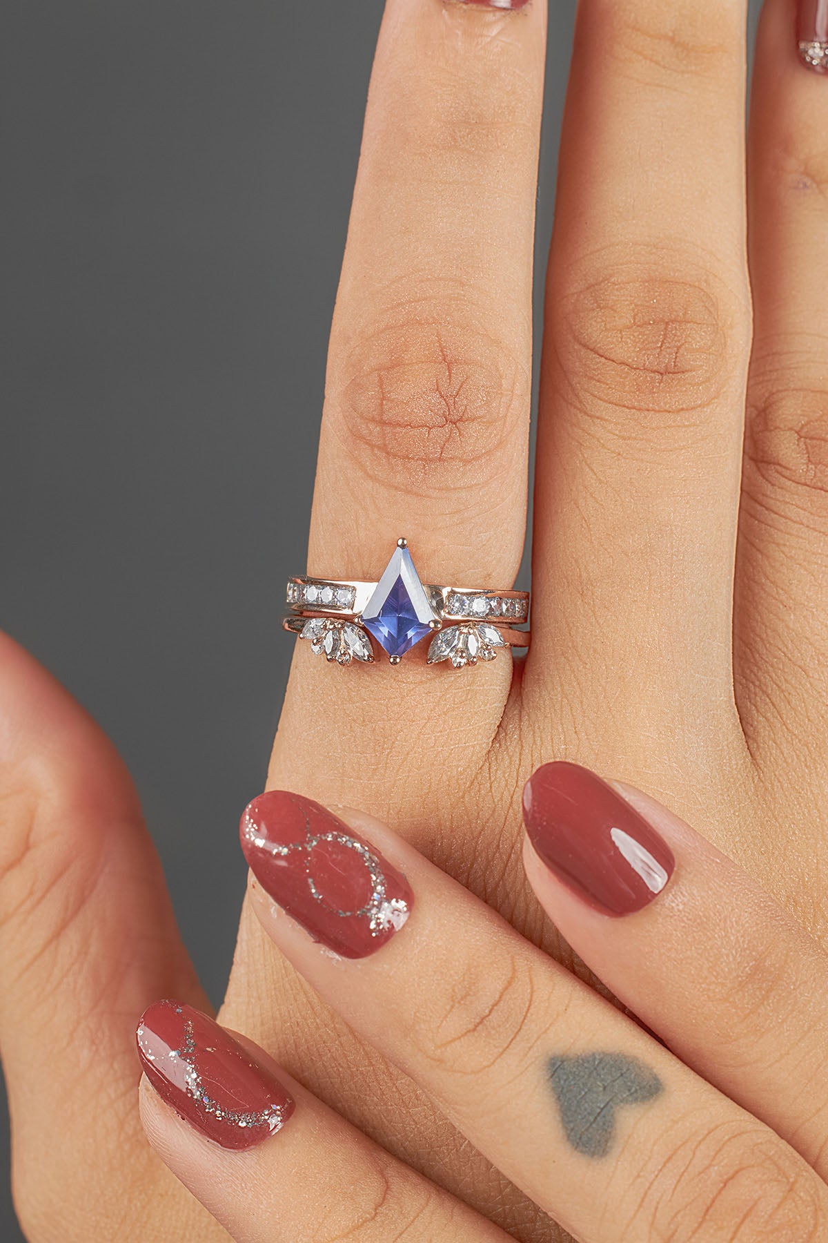 Kite Cut Bridal Ring Set Blue Titanic Gemstone Engagement Rings