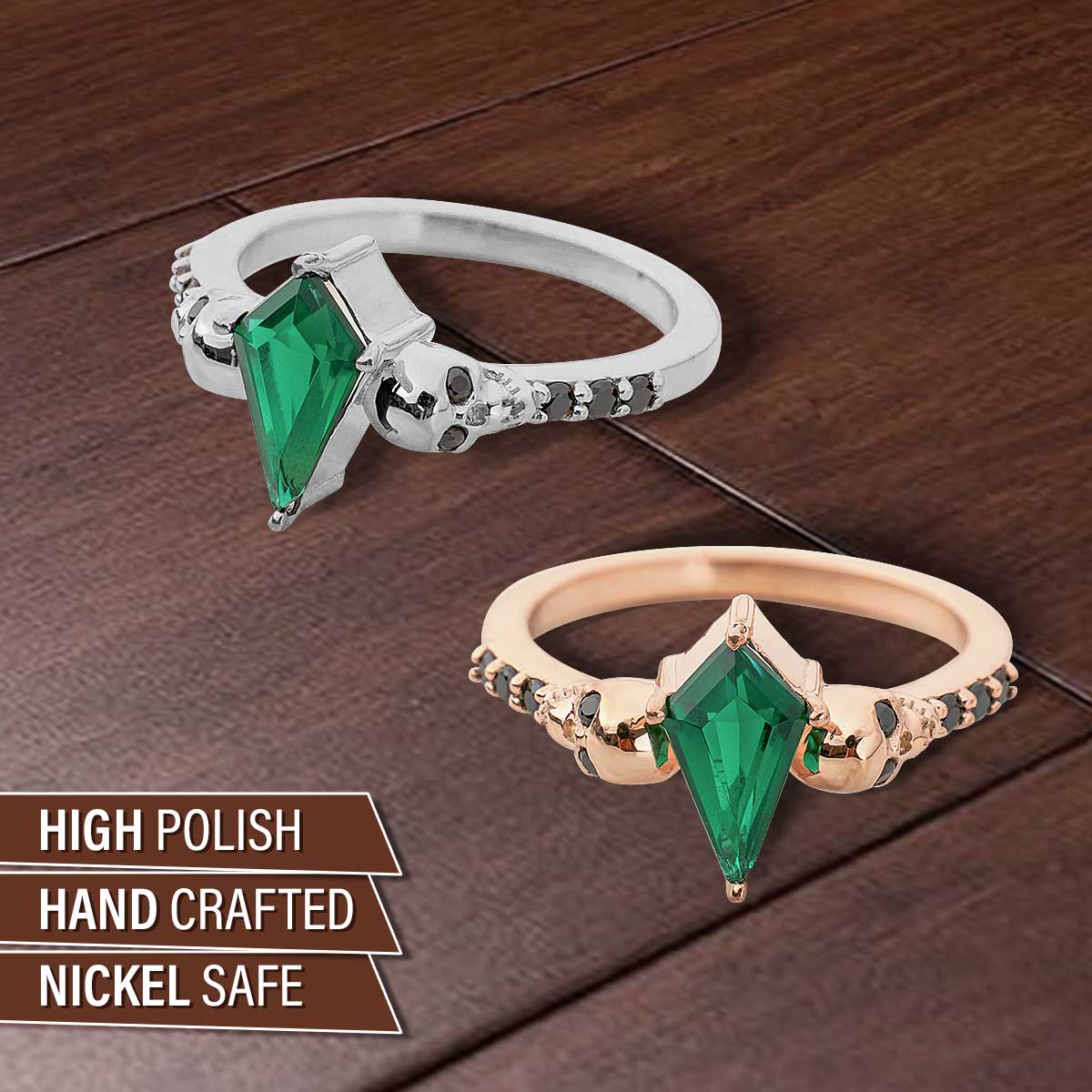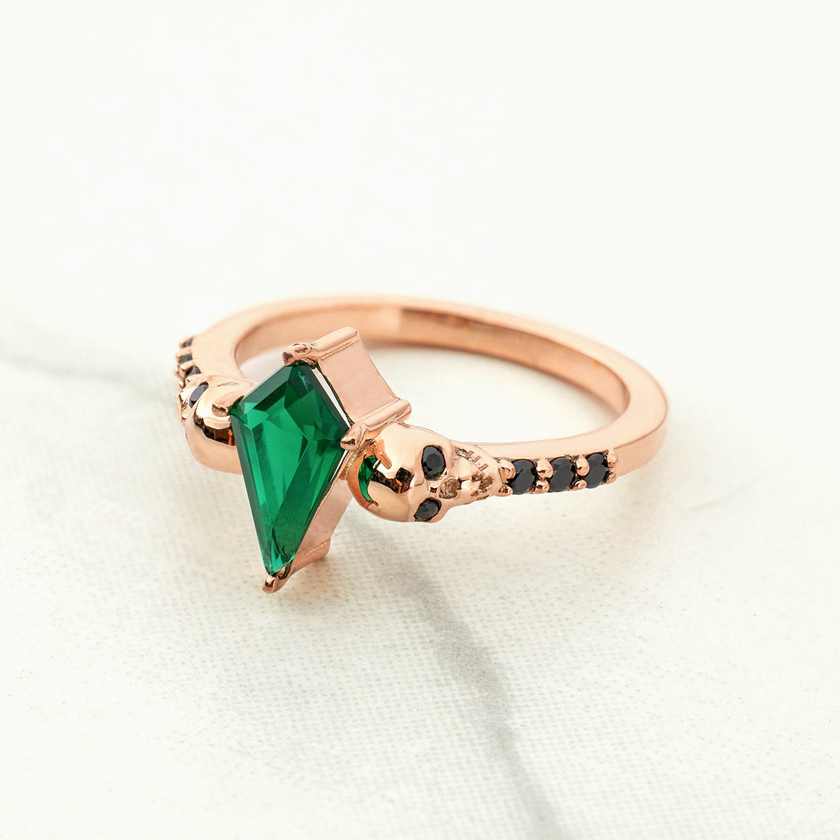 Kite Cut Green CZ Skull Ring Rose Gold Gothic Engagement Rings