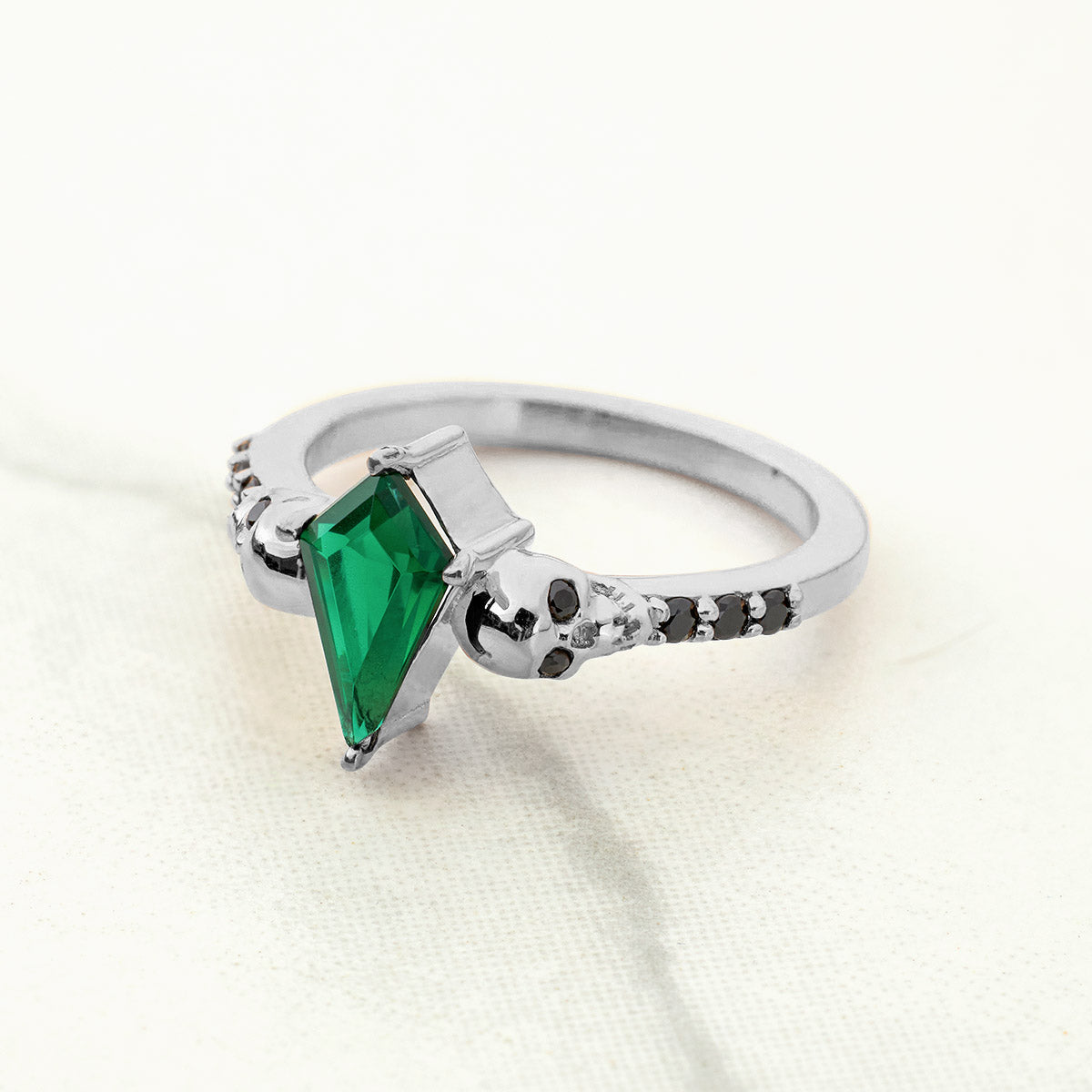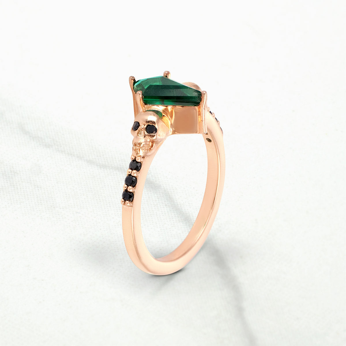 Kite Cut Natural Emerald Skull Ring Silver Gothic Wedding Rings
