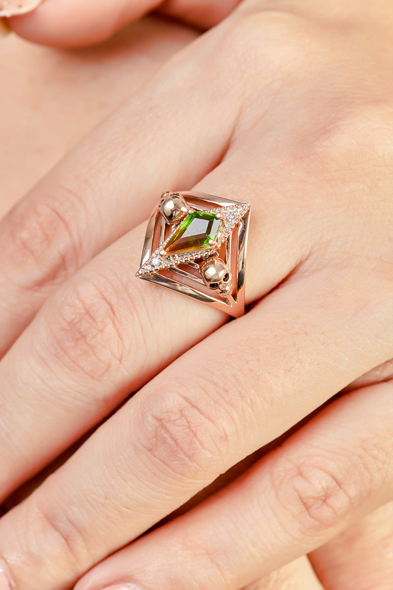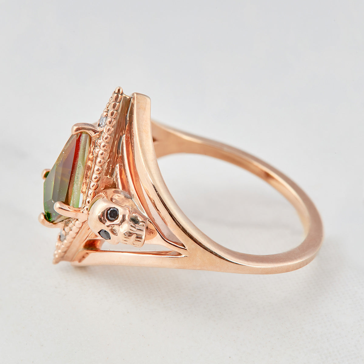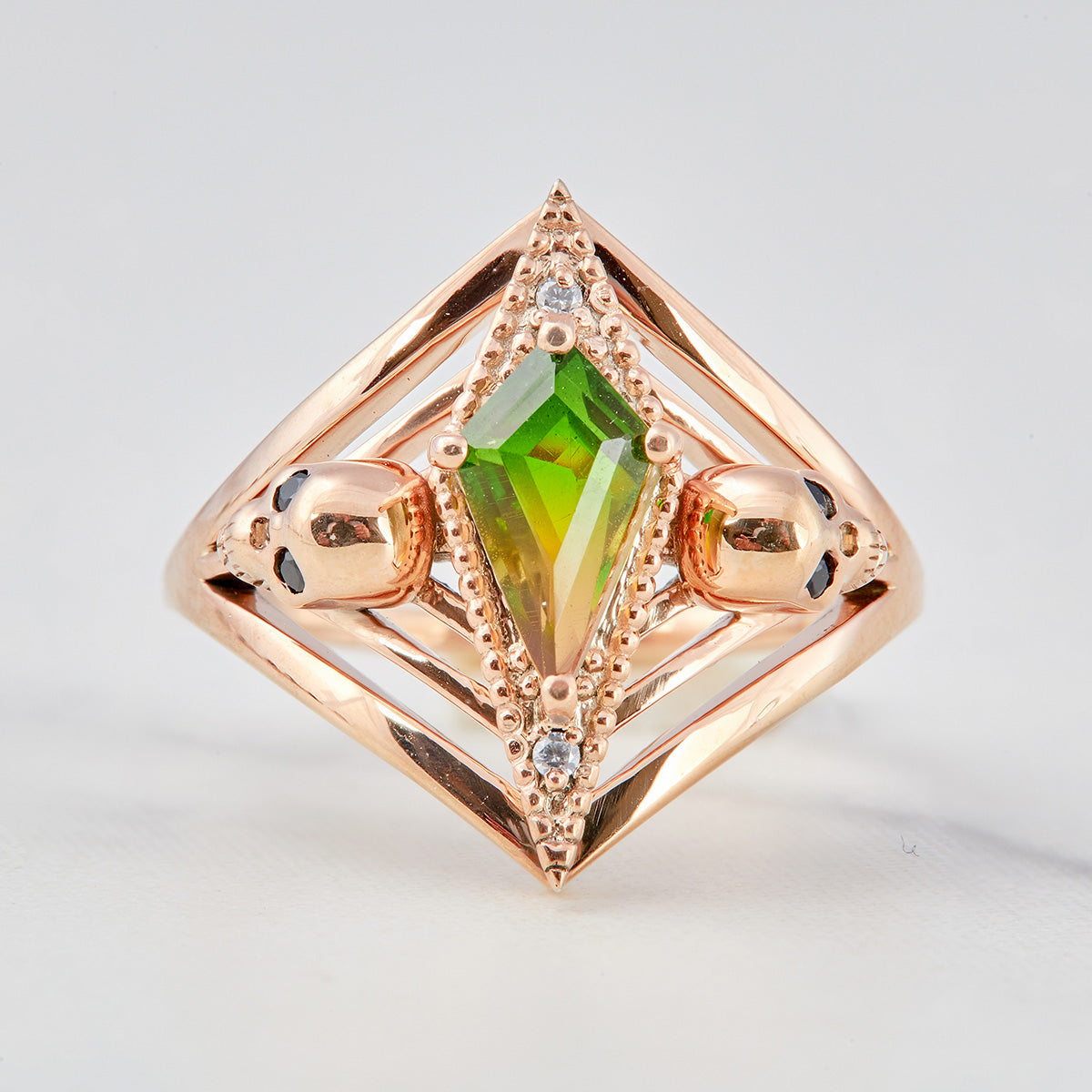 Kite Cut Skull Engagement Ring Womens Doublet Gemstone Gothic Jewerly