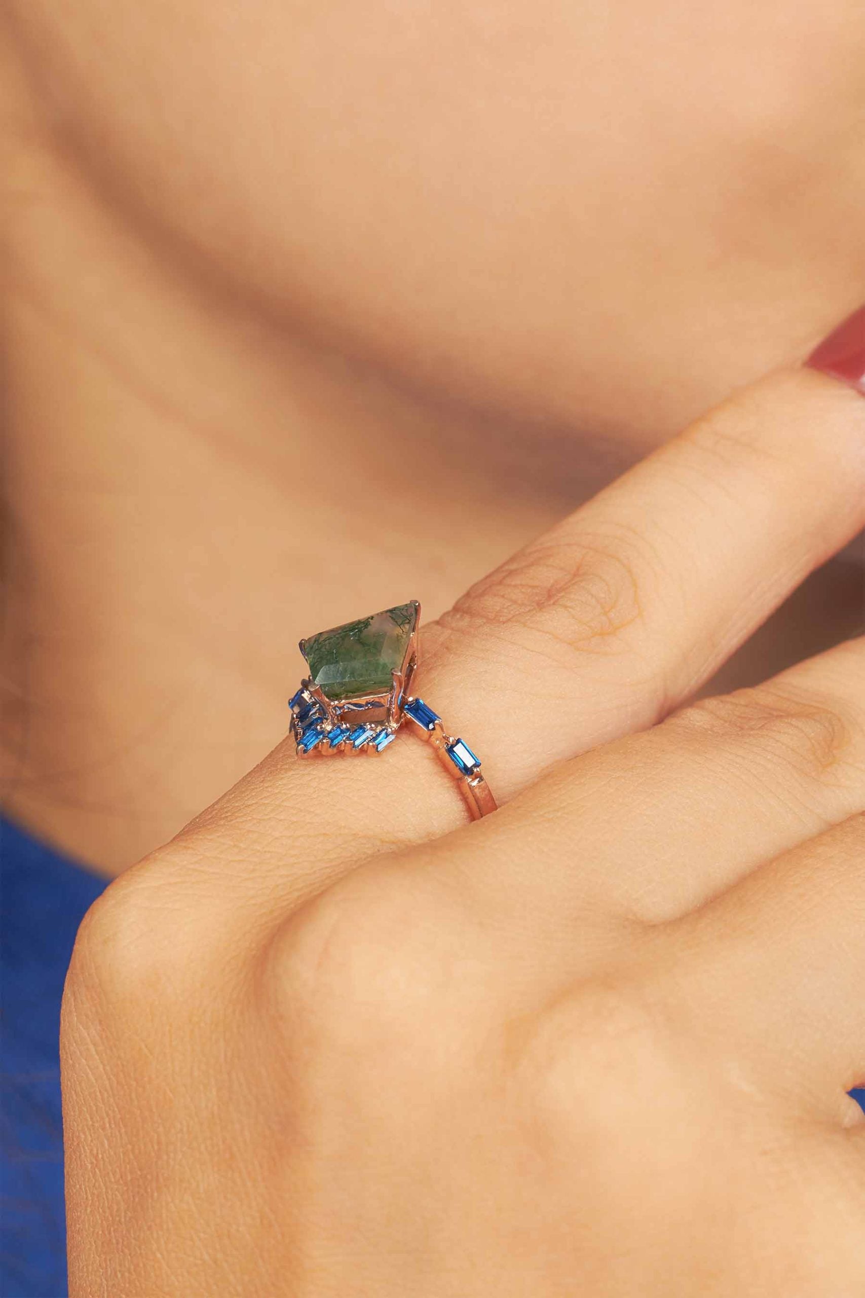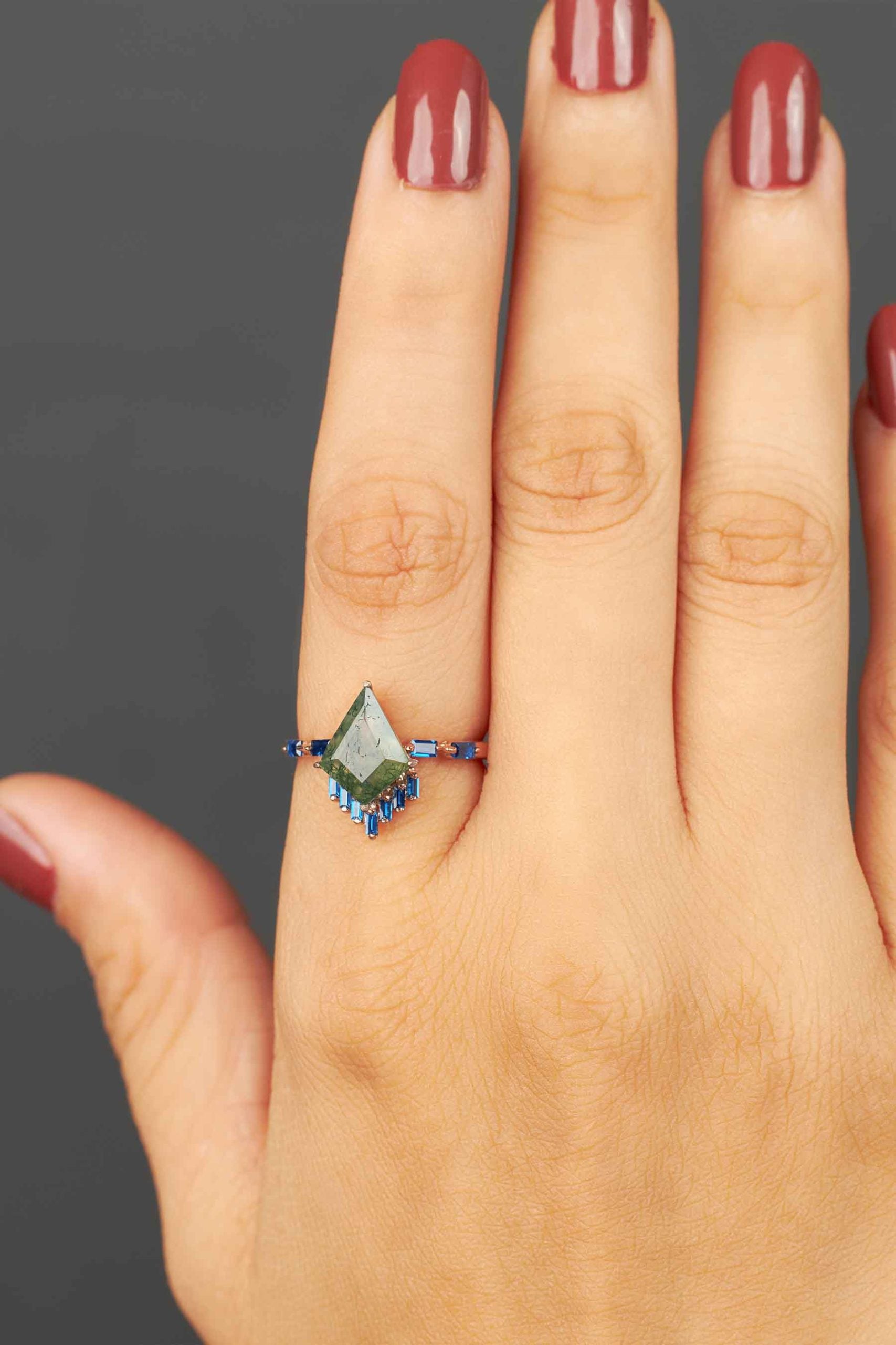 Kite Moss Agate Ring 14k Rose Gold Statement Engagement Ring