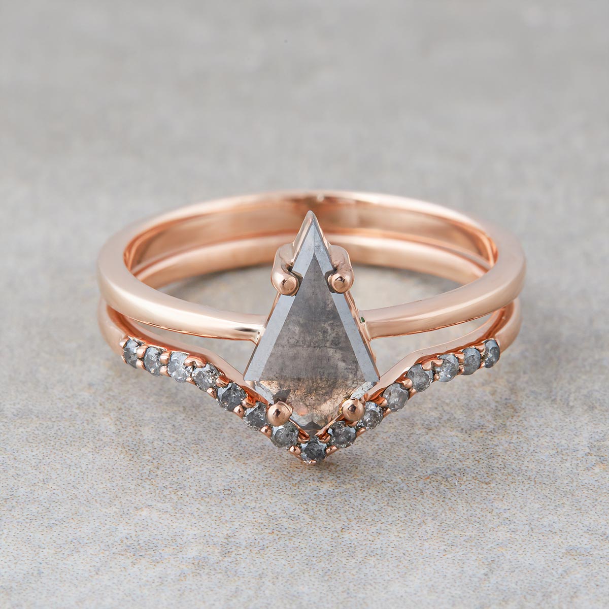 Kite Salt and Pepper Diamond Engagement Ring Set 0.80TCW