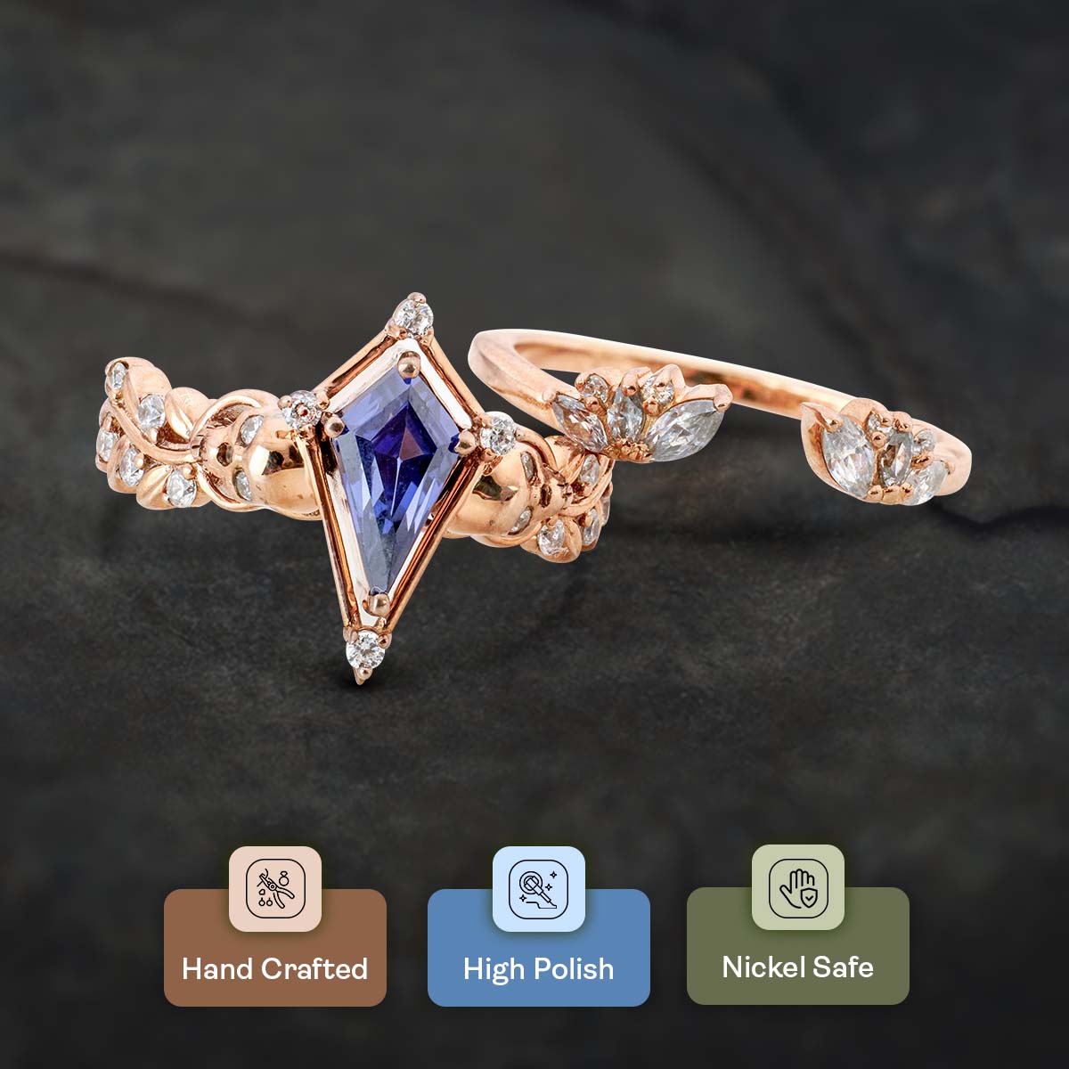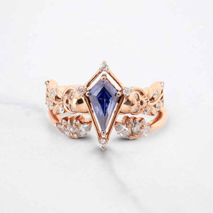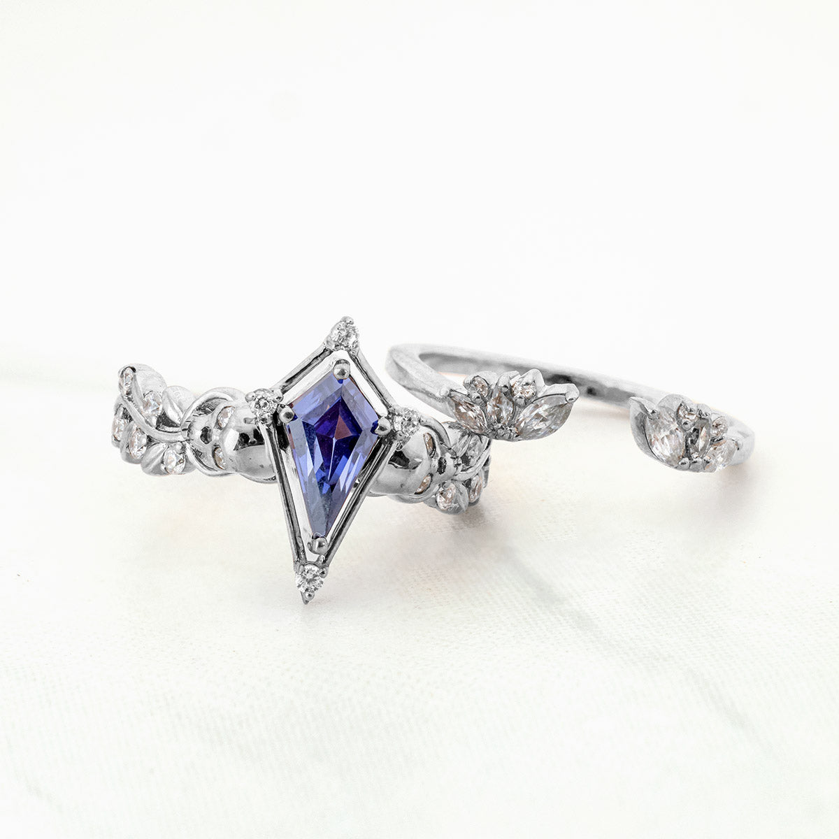 Leaf Vine Skull Wedding Ring Set Kite Cut Blue Titanic Gemstone