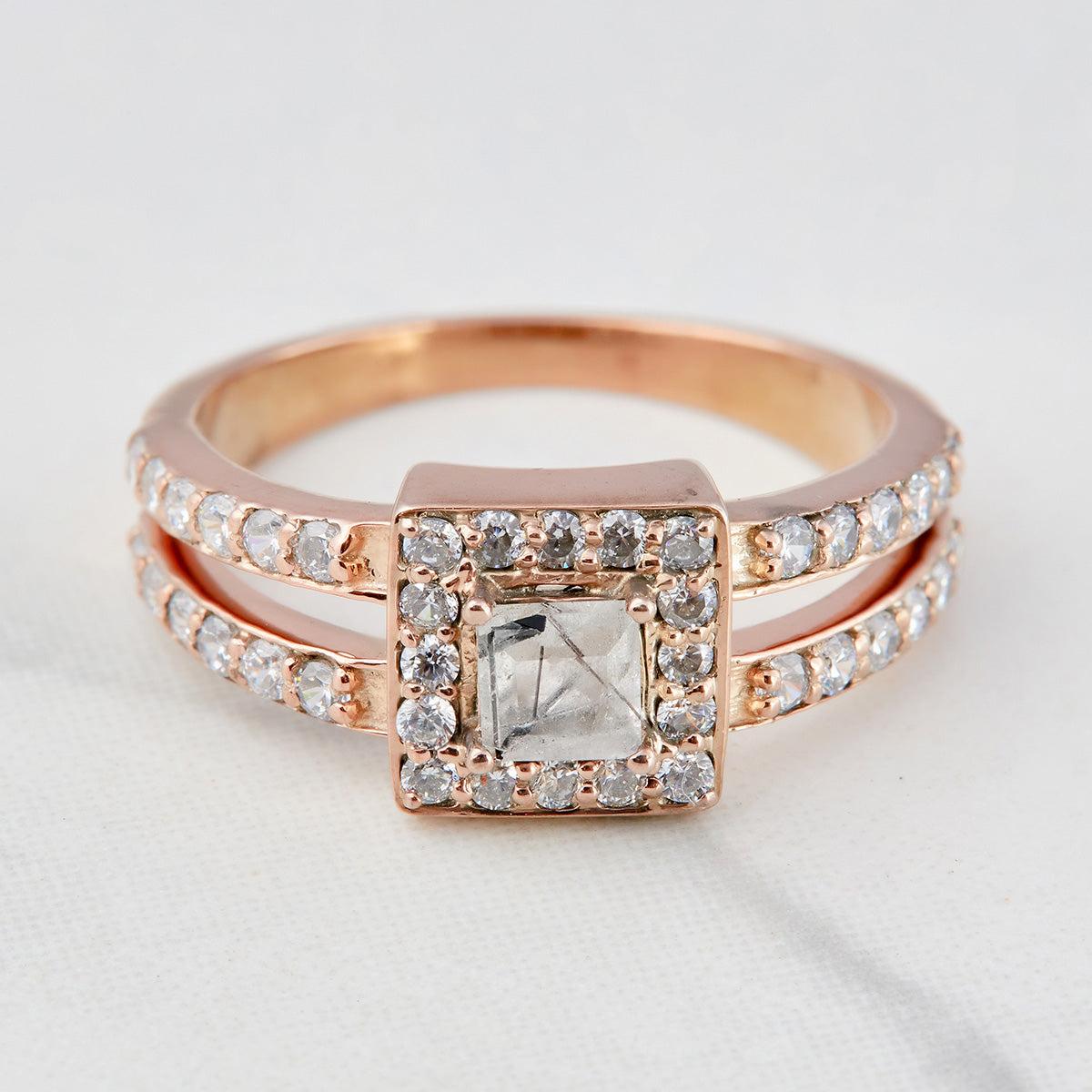 Learn moreMoissanite and Rutilated Quartz Ring Halo Princess Cut Rose Gold