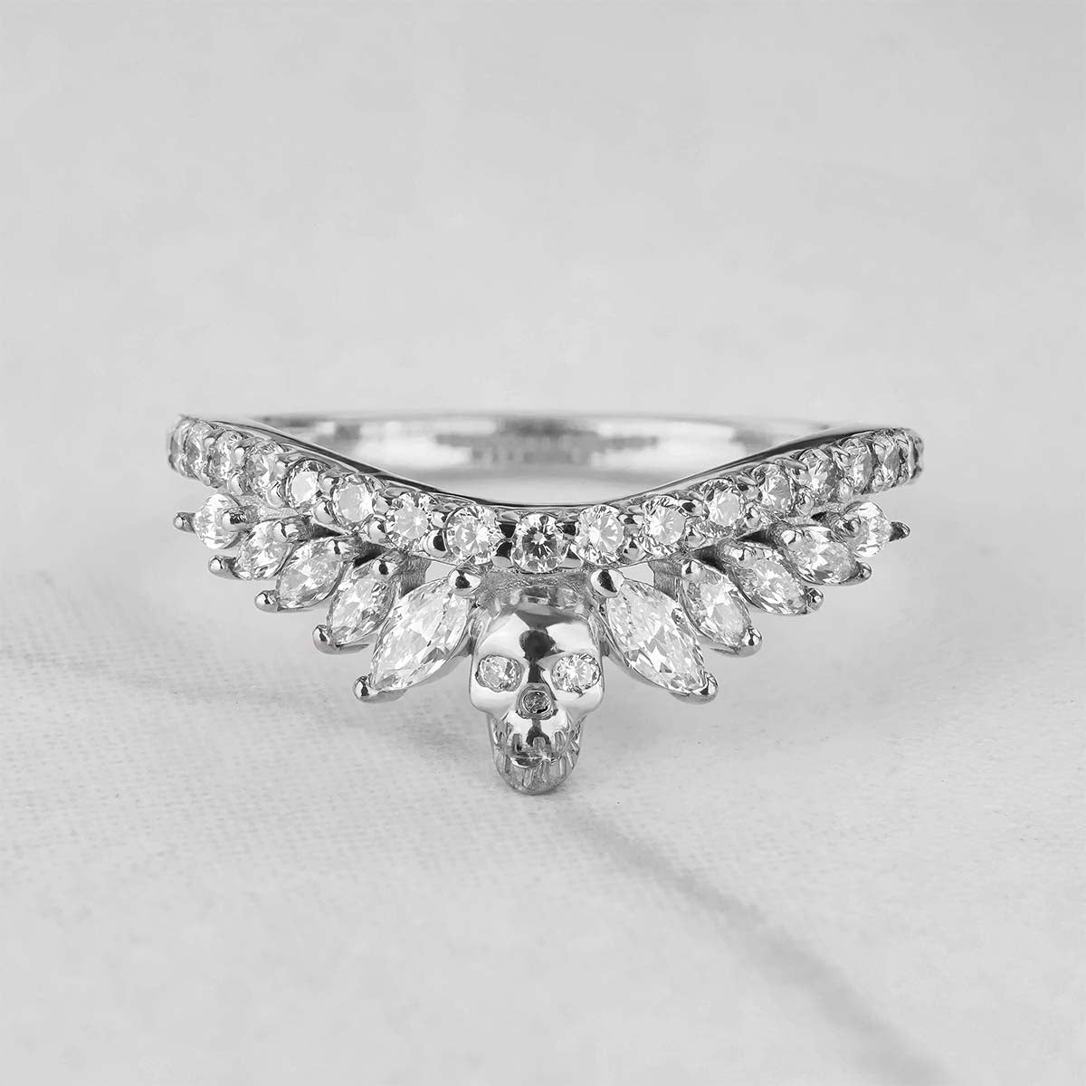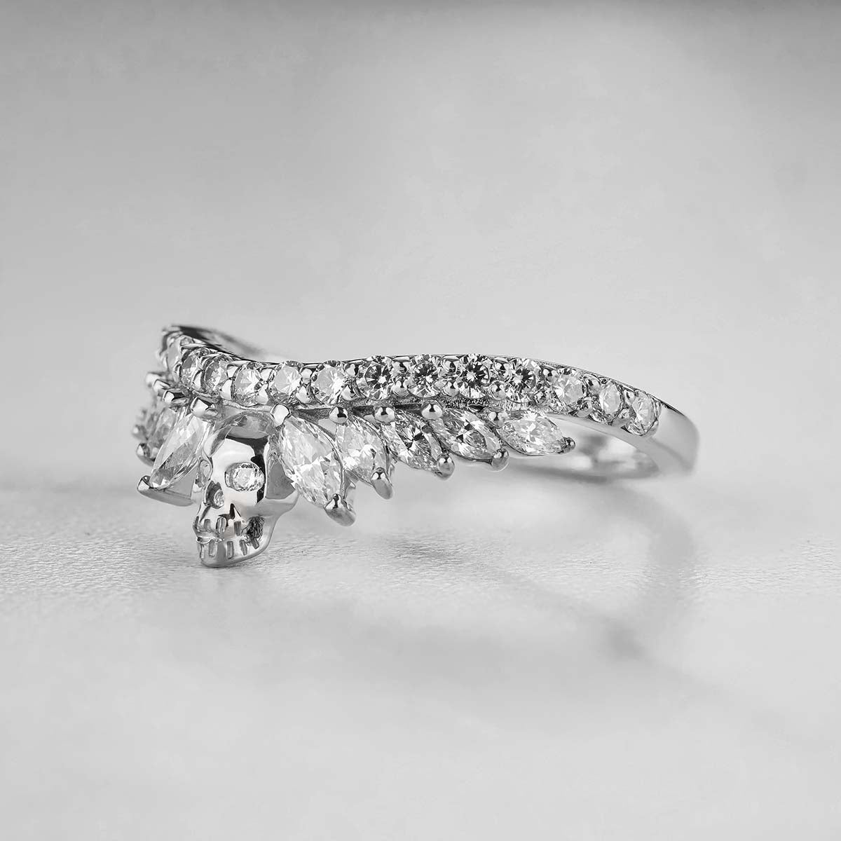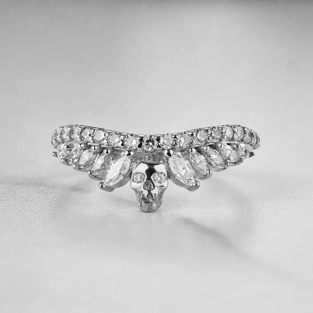 Moissanite Wedding Band Enhancer Skull Curved Engagement Ring Sterling Silver