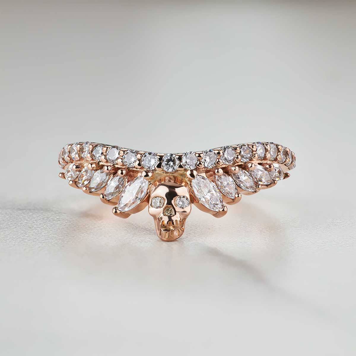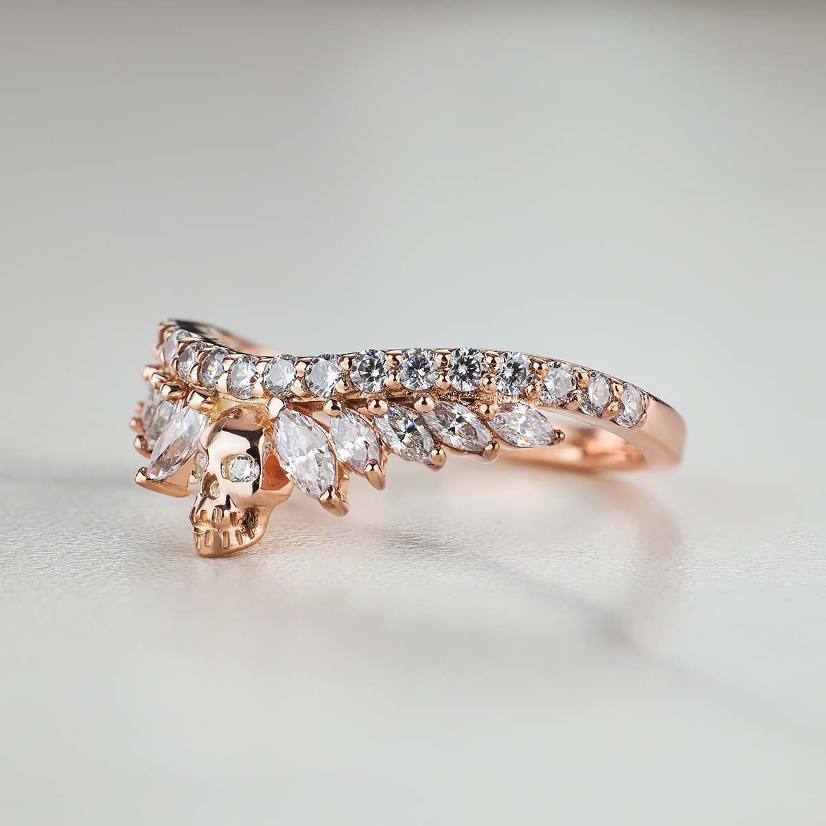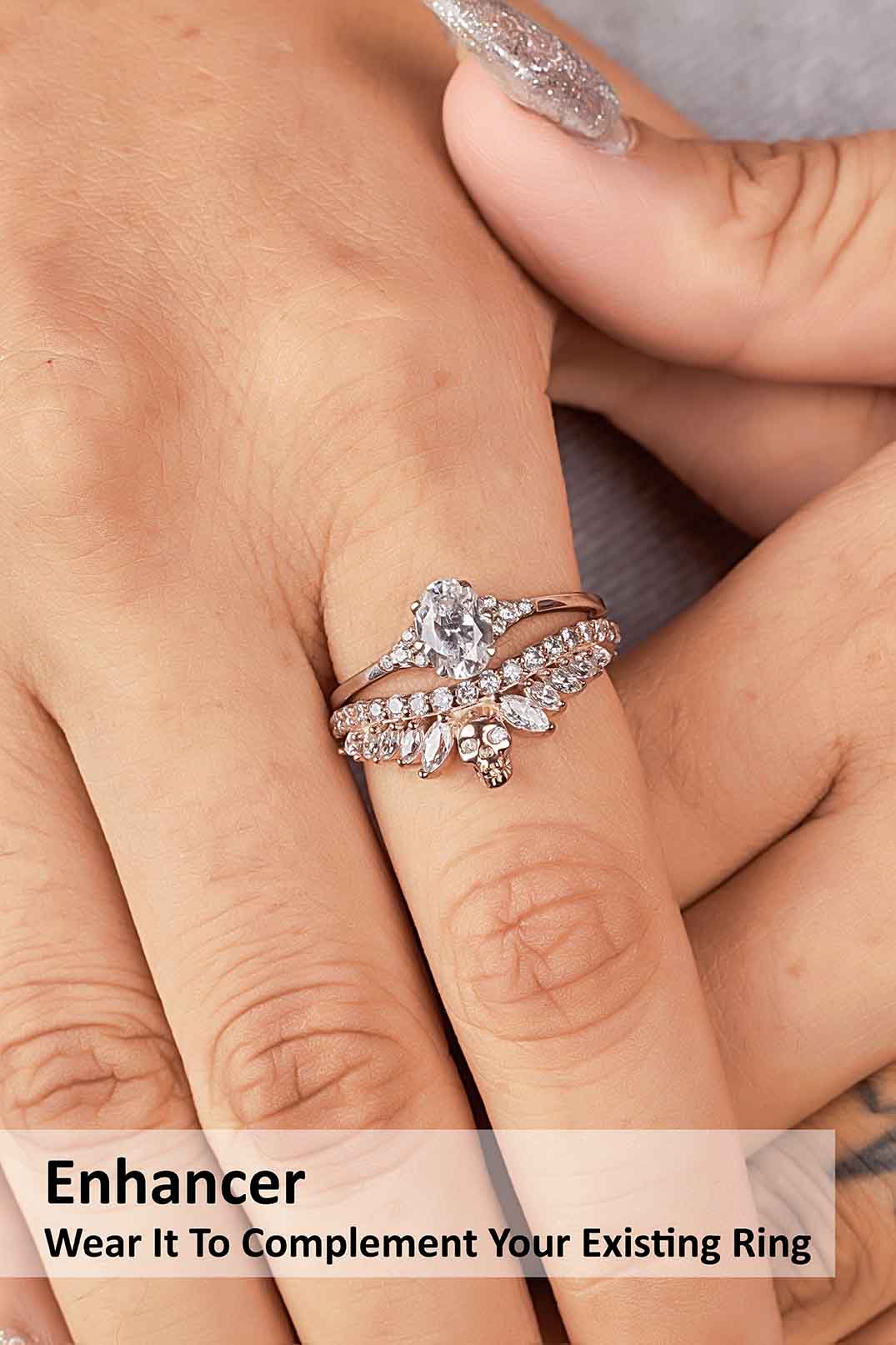 Moissanite Wedding Band Enhancer Skull Curved Engagement Ring Sterling Silver