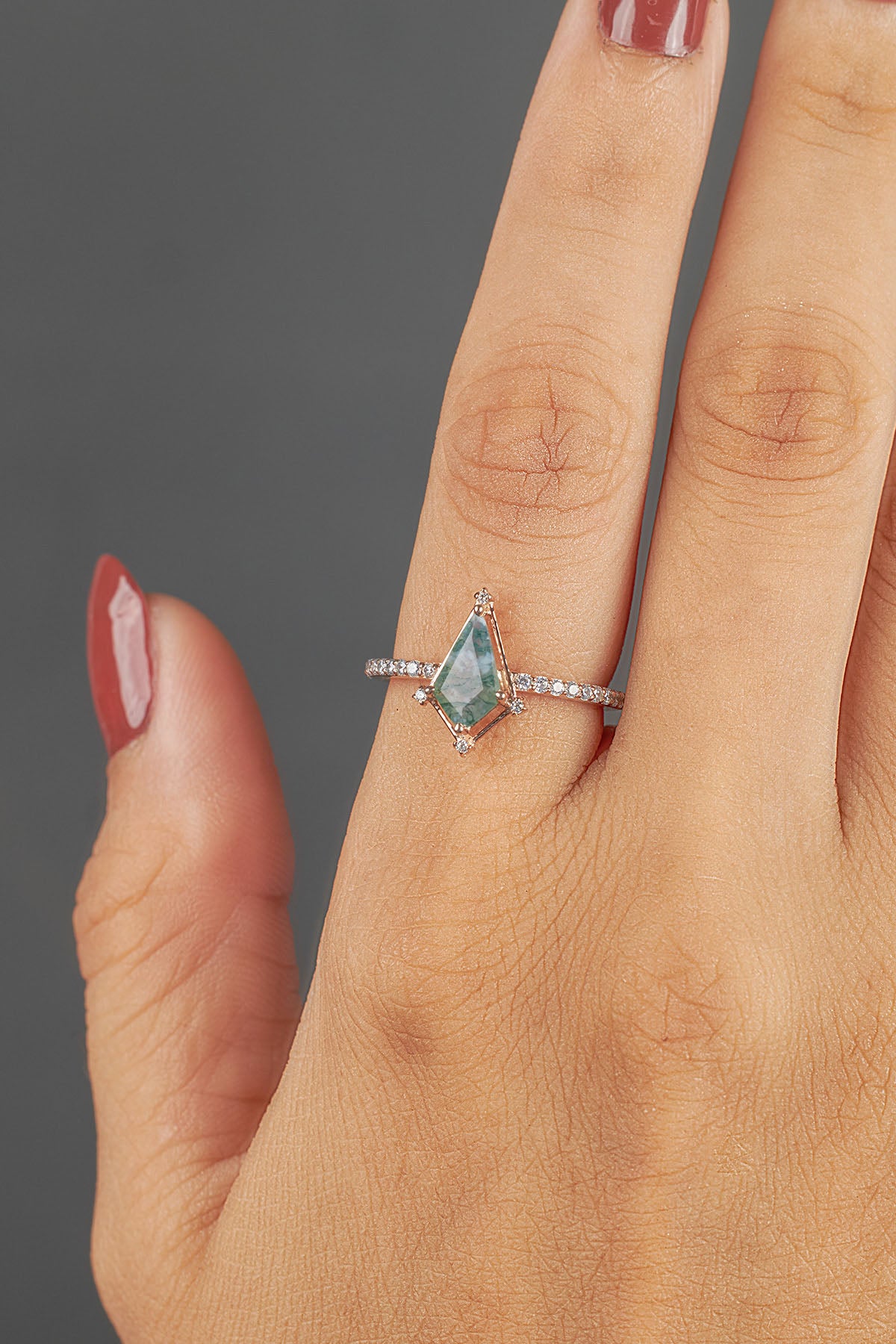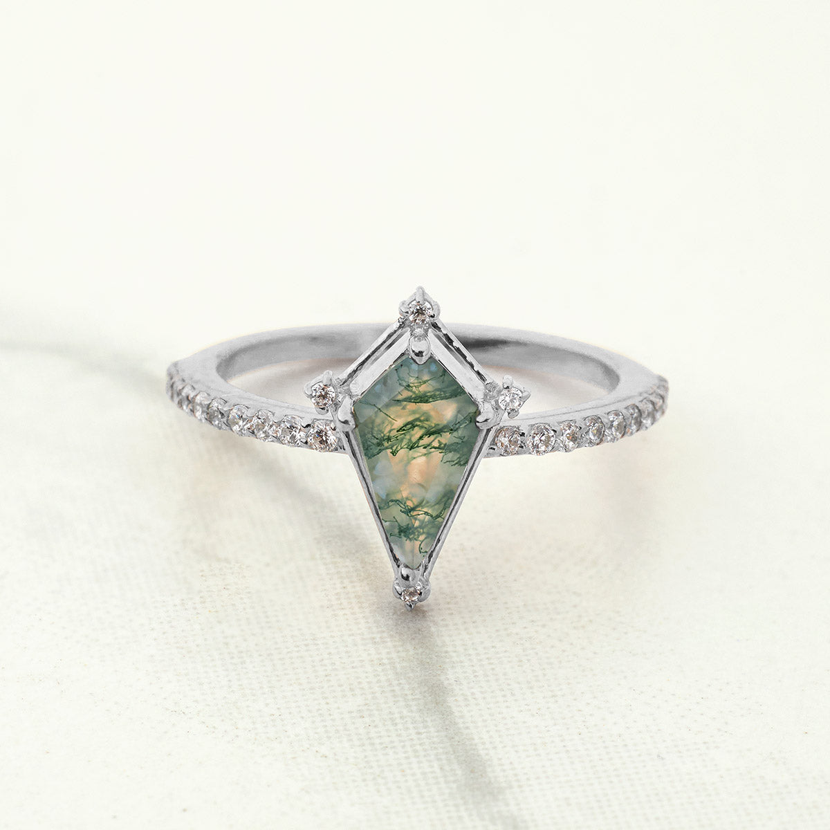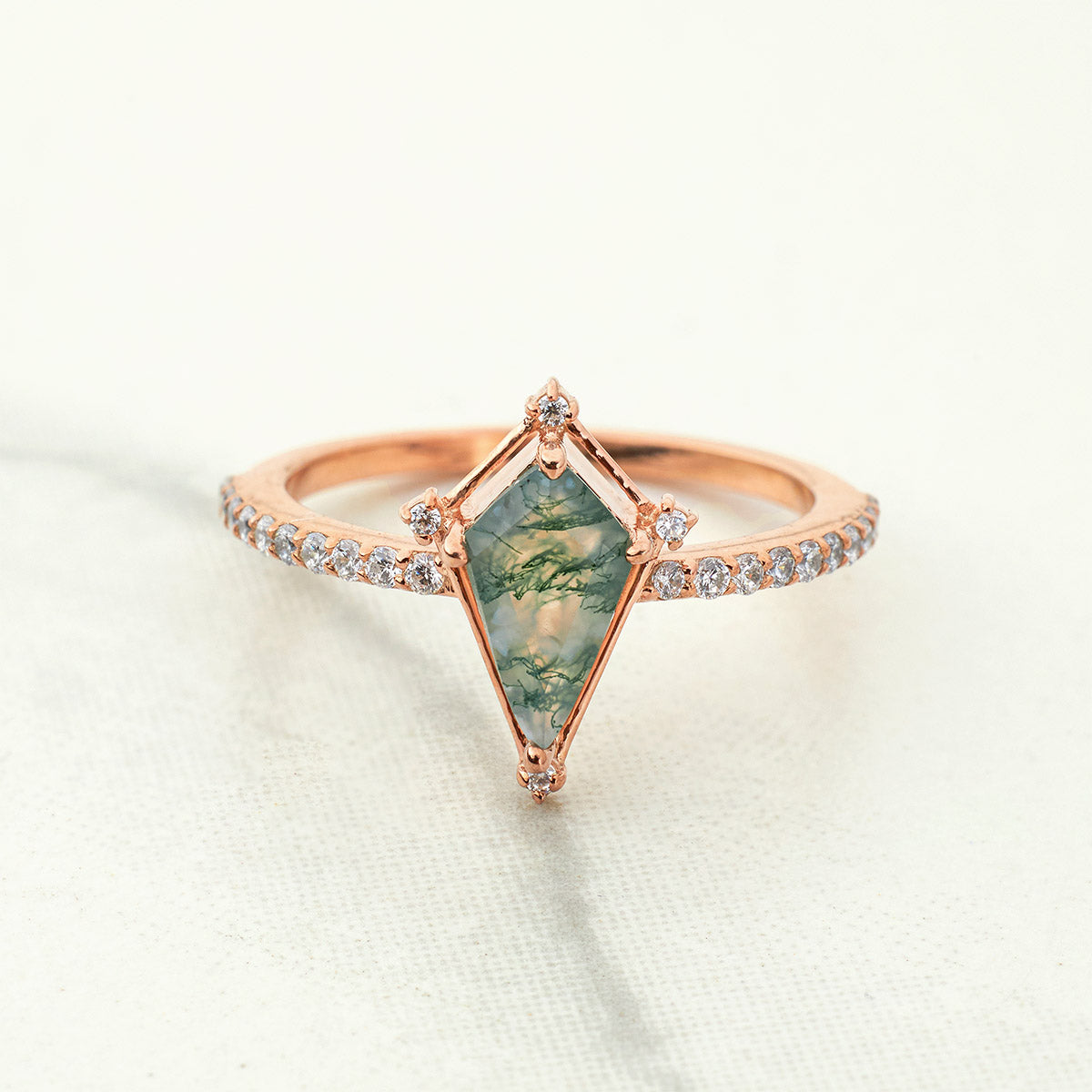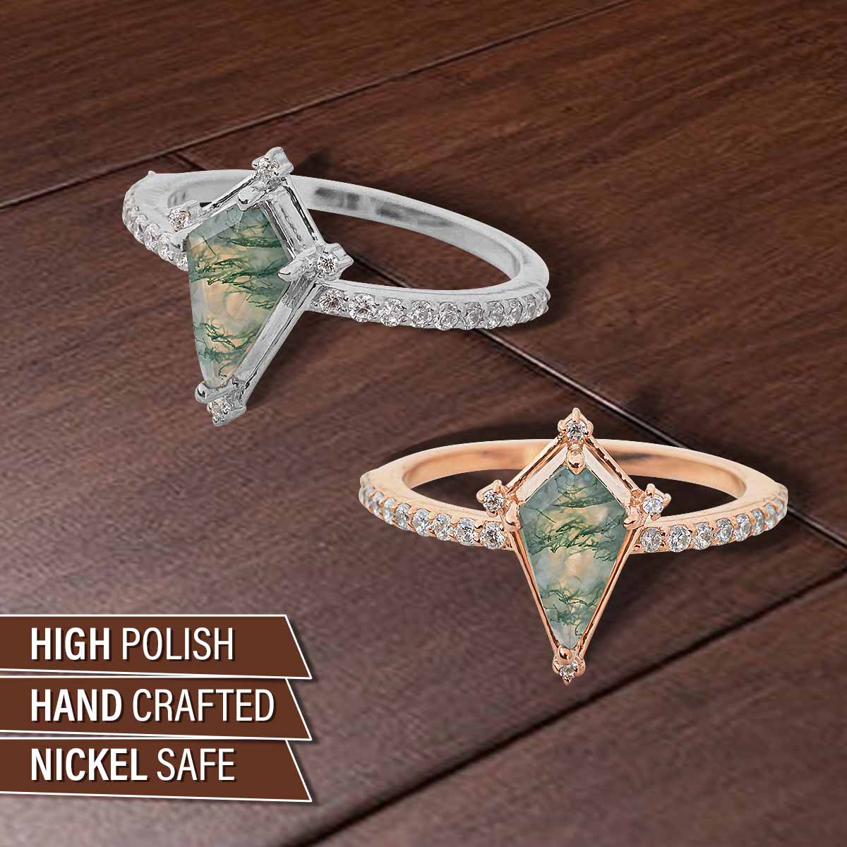 Learn moreMoss Agate Kite Cut Ring Healing Gemstone Engagement Rings