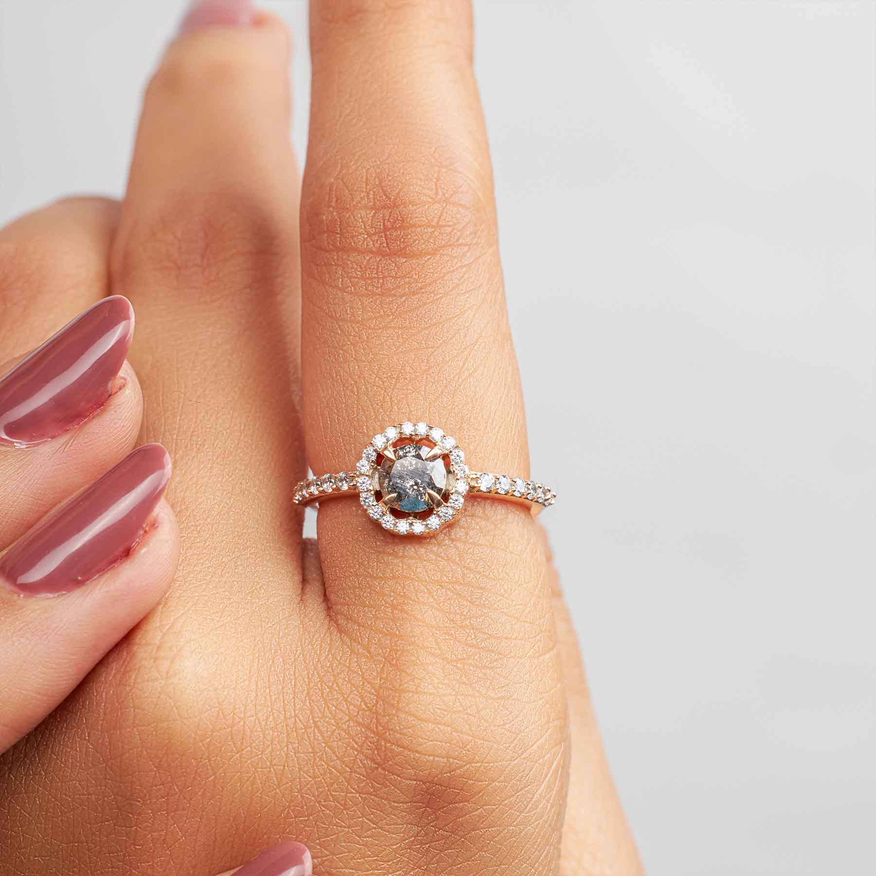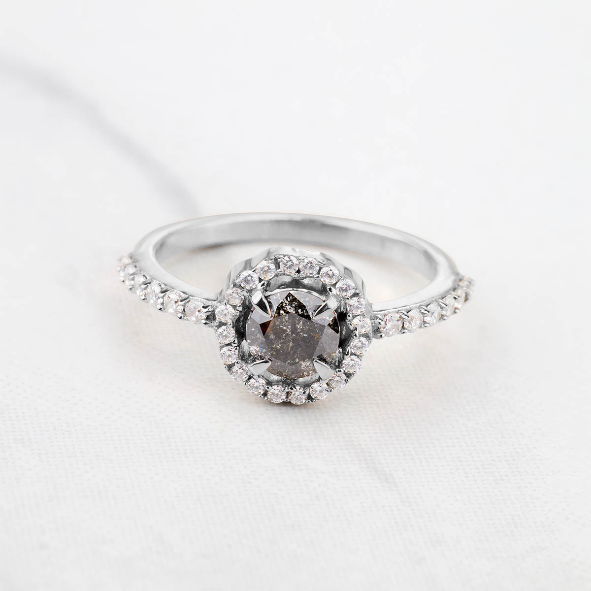 Learn moreNatural Salt and Pepper Diamond Halo Moissanite Wedding Ring
